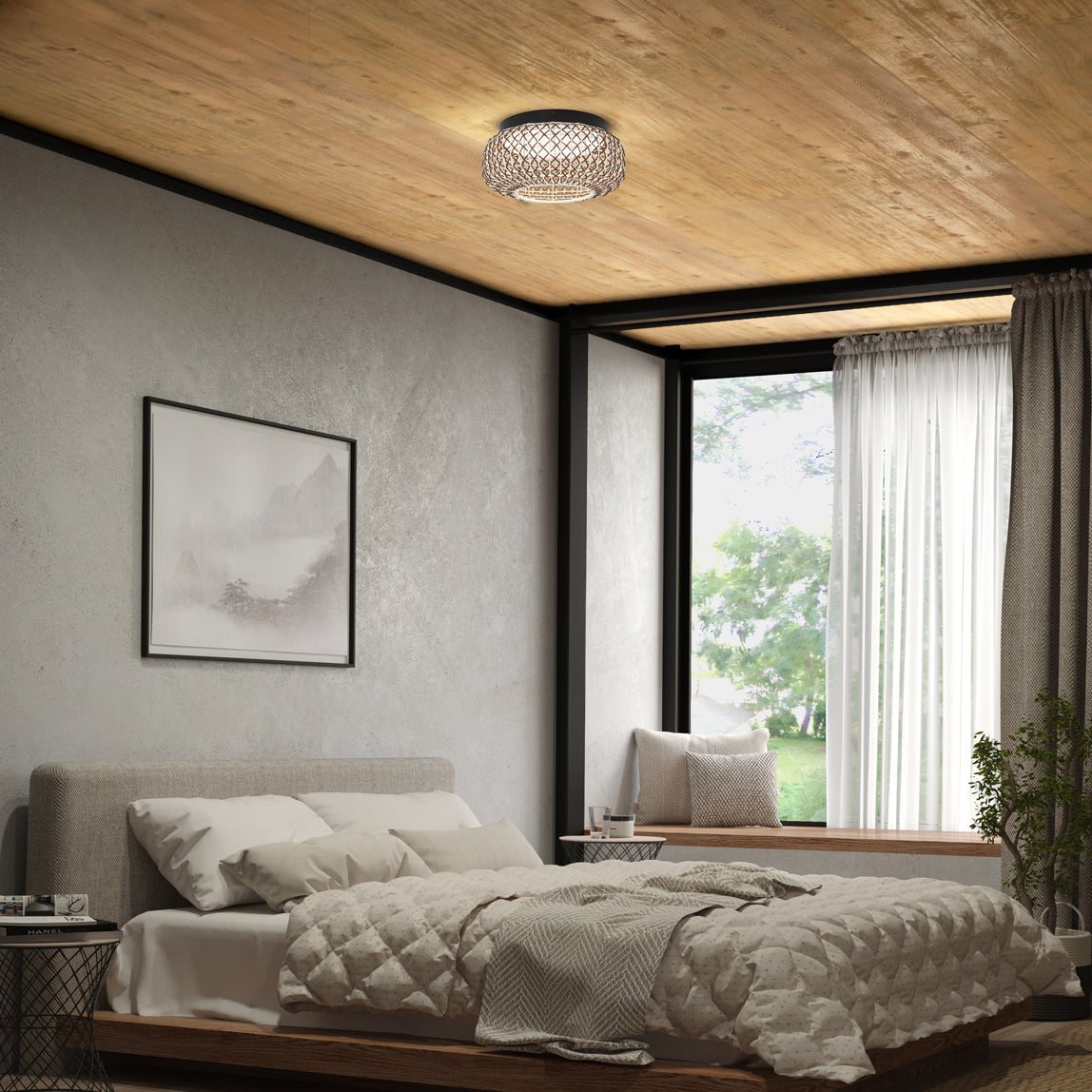 Elegir una opción de iluminación de bajo consumo puede ahorrar en costos de energía y, al mismo tiempo, ser igual de efectiva para su dormitorio. Las luces LED (diodos emisores de luz) suelen tener una vida útil más larga. Un ejemplo incluye la lámpara empotrada LED integrada negra y dorada Aristo, que combina colores modernos con un diseño retro. La luminaria Aristo es una de las mejores opciones de iluminación sustentable, ya que viene con un regulador LED compatible, más de 2000 días de energía y 2000 lúmenes que pueden iluminar cualquier habitación al instante. Con la tecnología de color ajustable, puede elegir un tono que se adapte a su estado de ánimo y al tema general del dormitorio. Ver producto