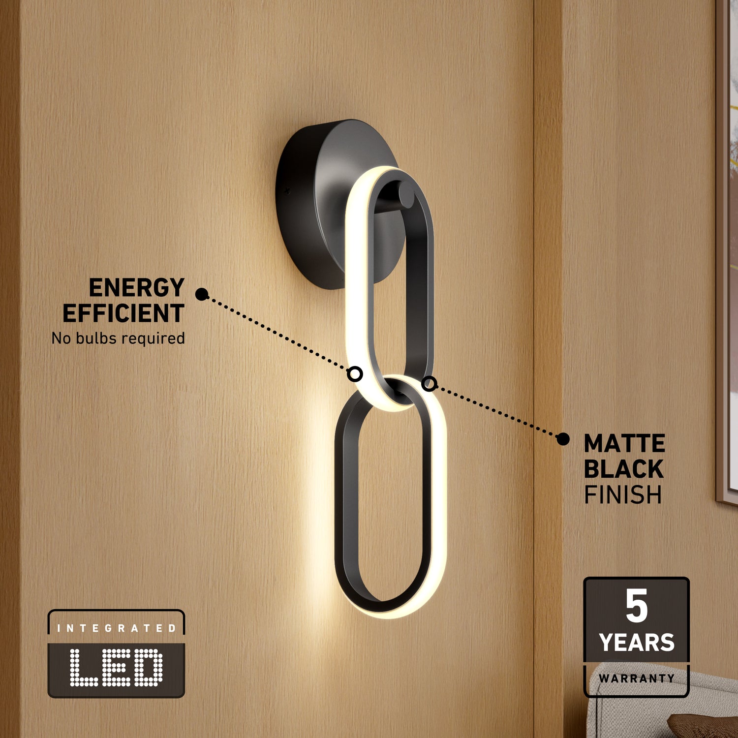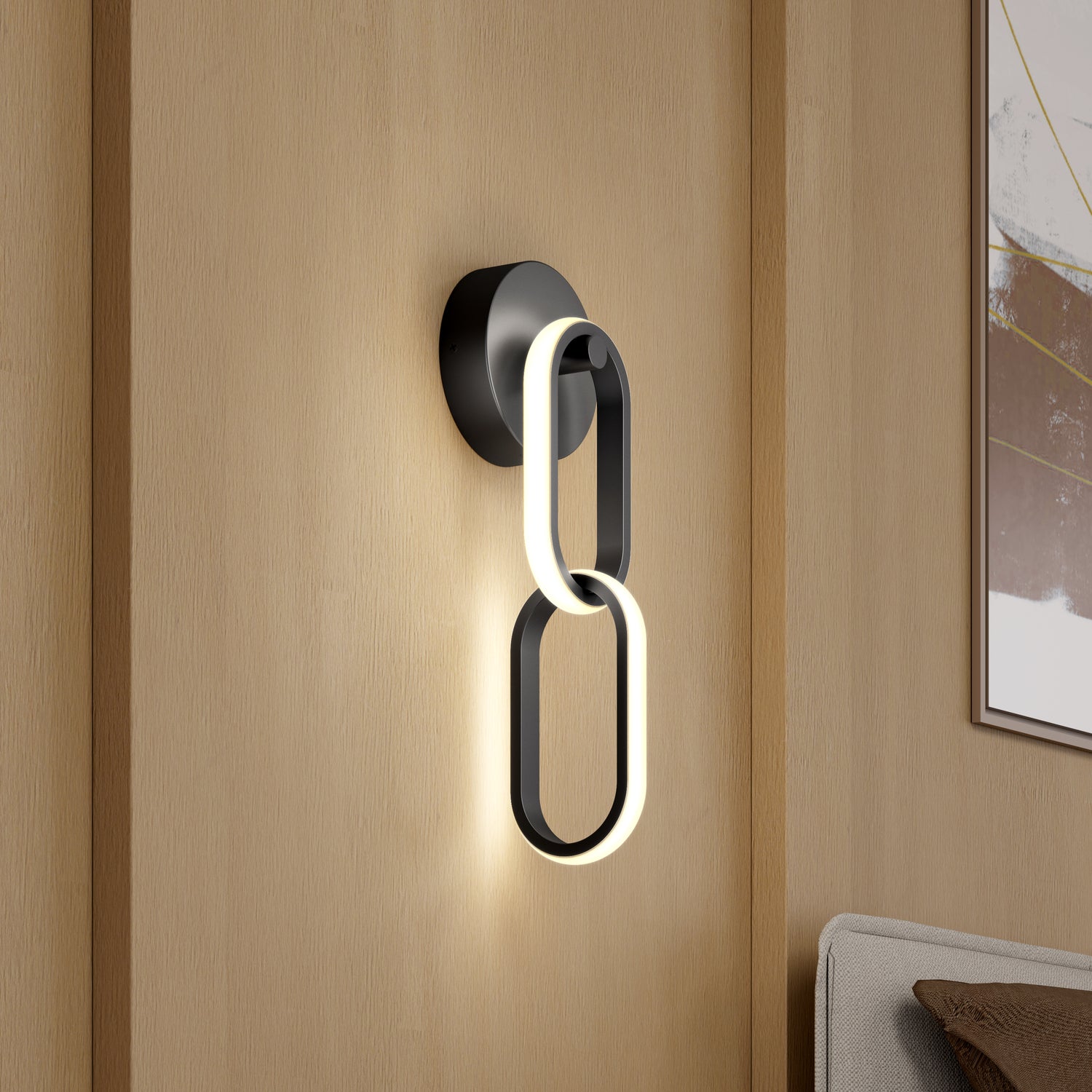 Esta lámpara de pared con luz led integrada es el punto fuerte de su decorado moderno. Tiene la forma de dos eslabones entrelazados que proyectan una hermosa luz en todas las direcciones. Instálela en un pasillo, a cada lado de una obra o de una pared de acento, o en una columna para resaltar la belleza.