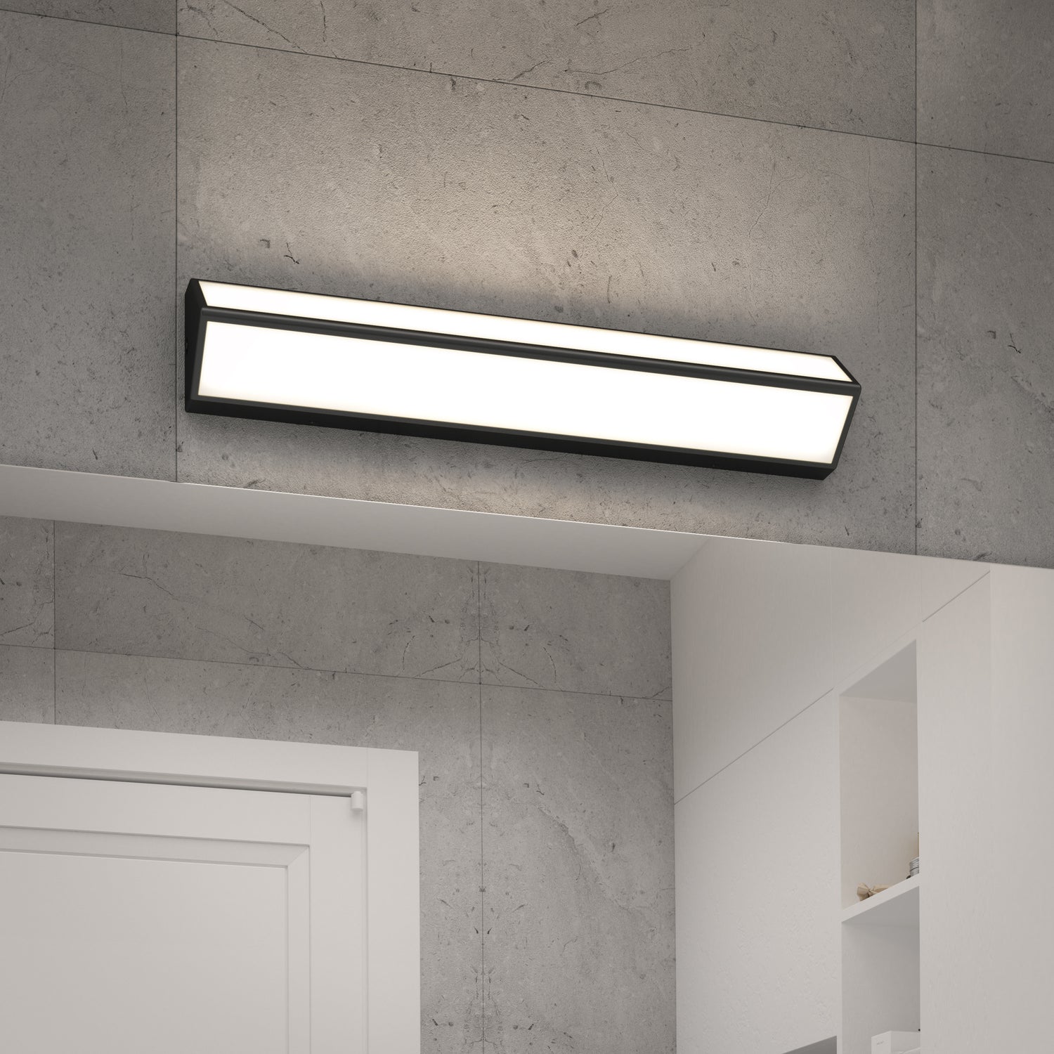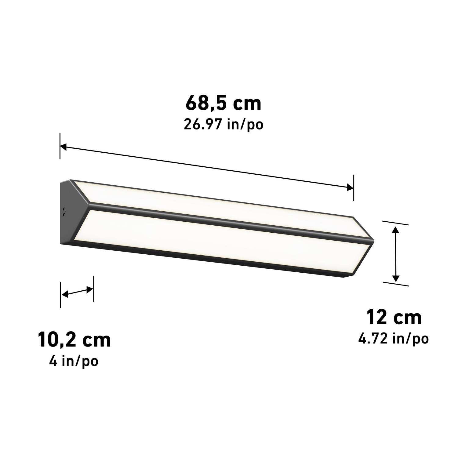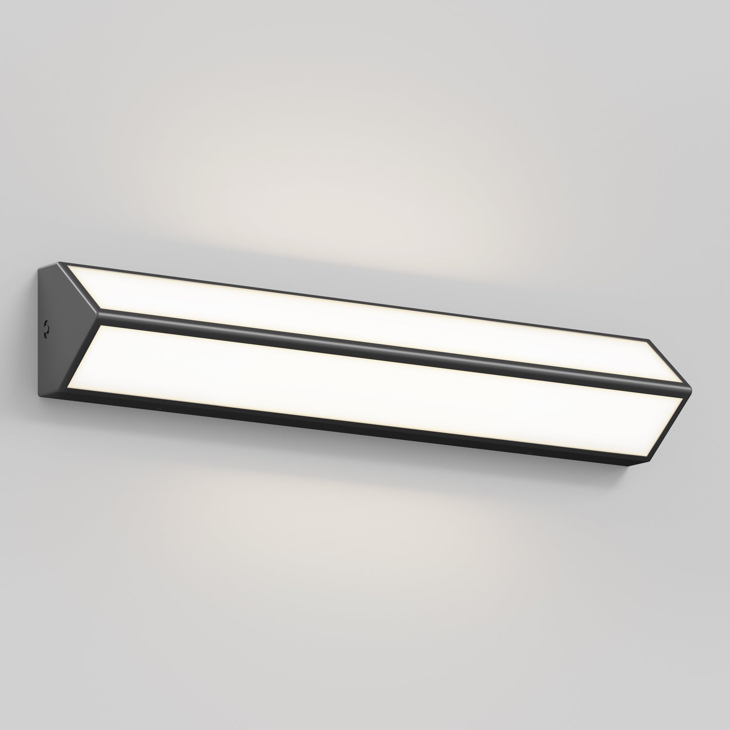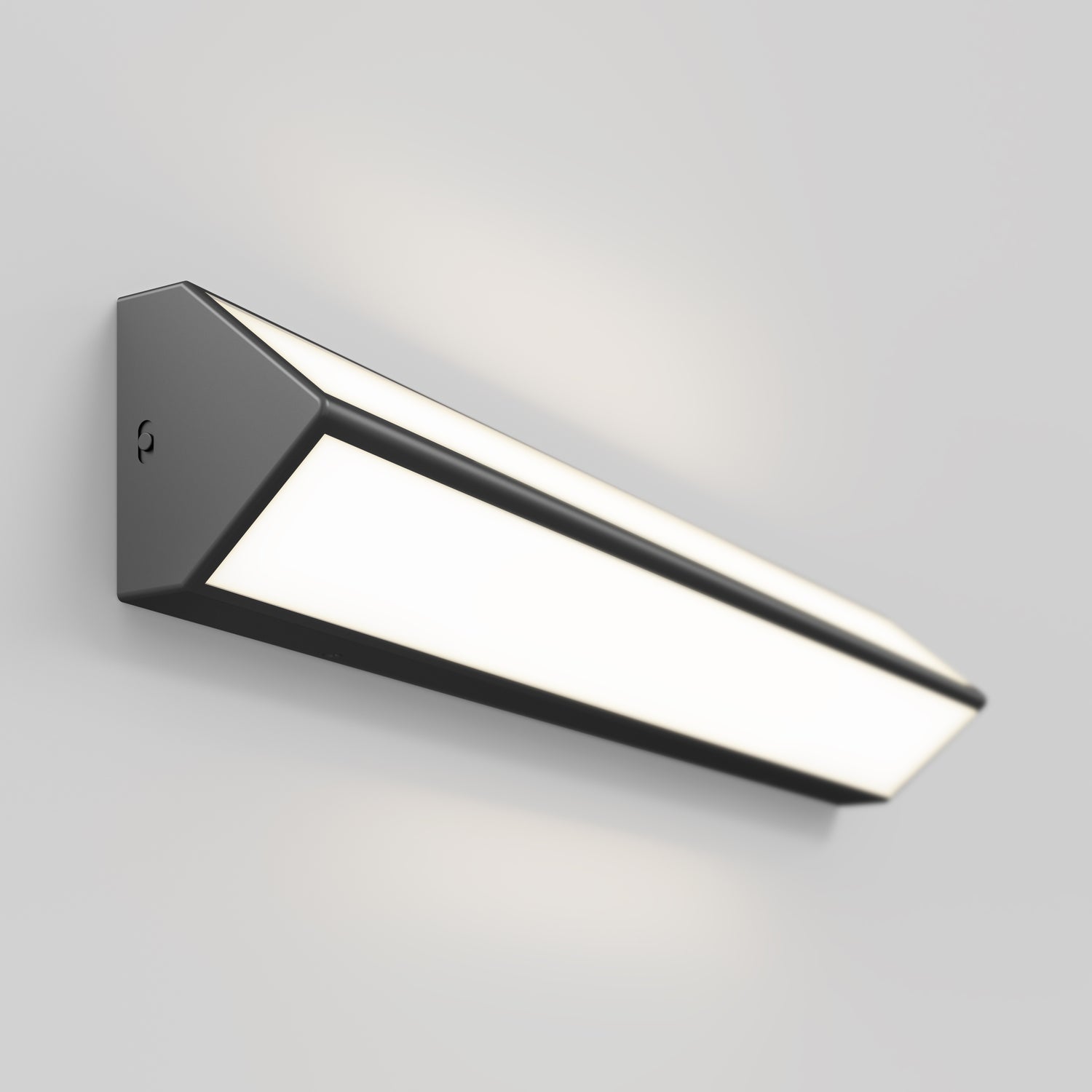 Este aplique de pared triangular con luz led integrada proyecta la luz hacia arriba y hacia abajo para iluminar tanto el rostro como la pieza. Es ideal para instalarlo sobre el tocador de baño o del aseo. Se ajusta a todo decorado moderno y contemporáneo gracias a su acabado negro mate. Cuando se acopla a un regulador de luz led compatible se puede variar su intensidad que tiene una potencia total de 1100 lúmenes. Este aplique de pared permite igualmente escoger entre un blanco cálido, suave o frío, para fundirse con las demás fuentes de iluminación. Vida útil: 50 000 horas.