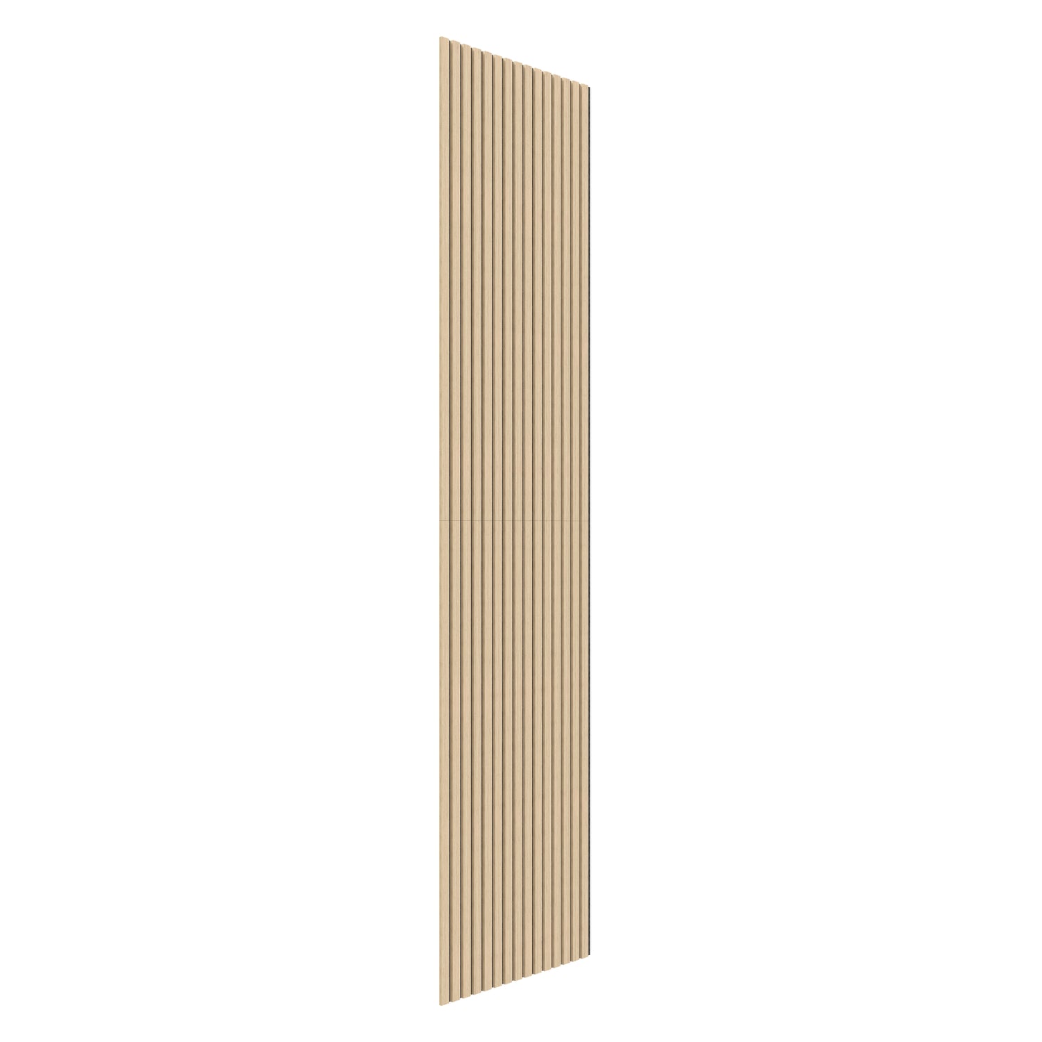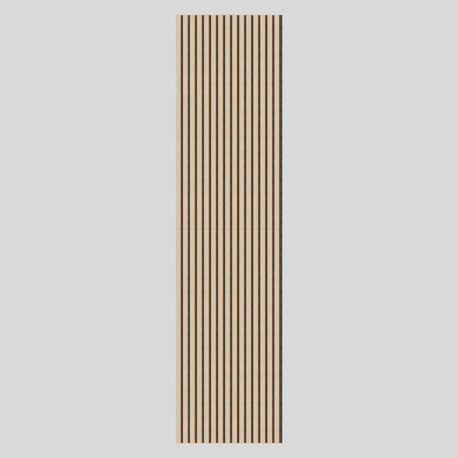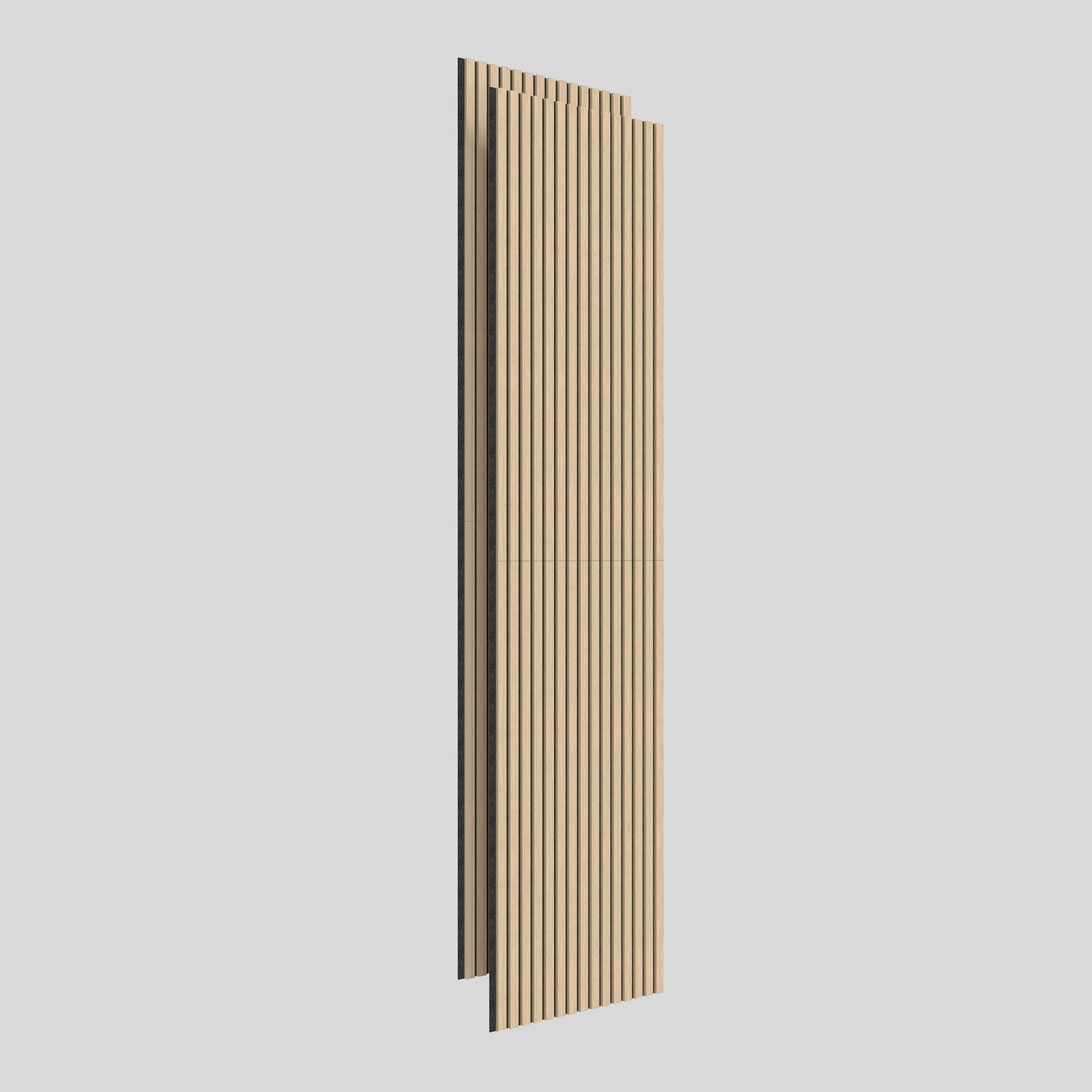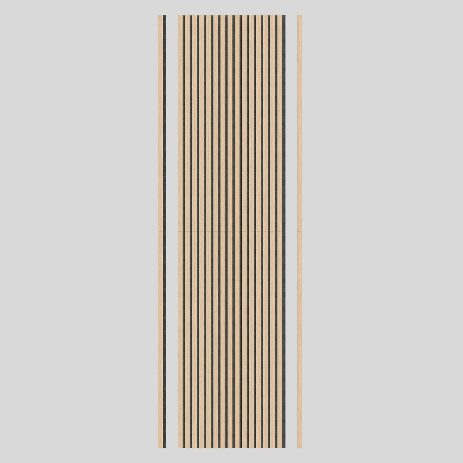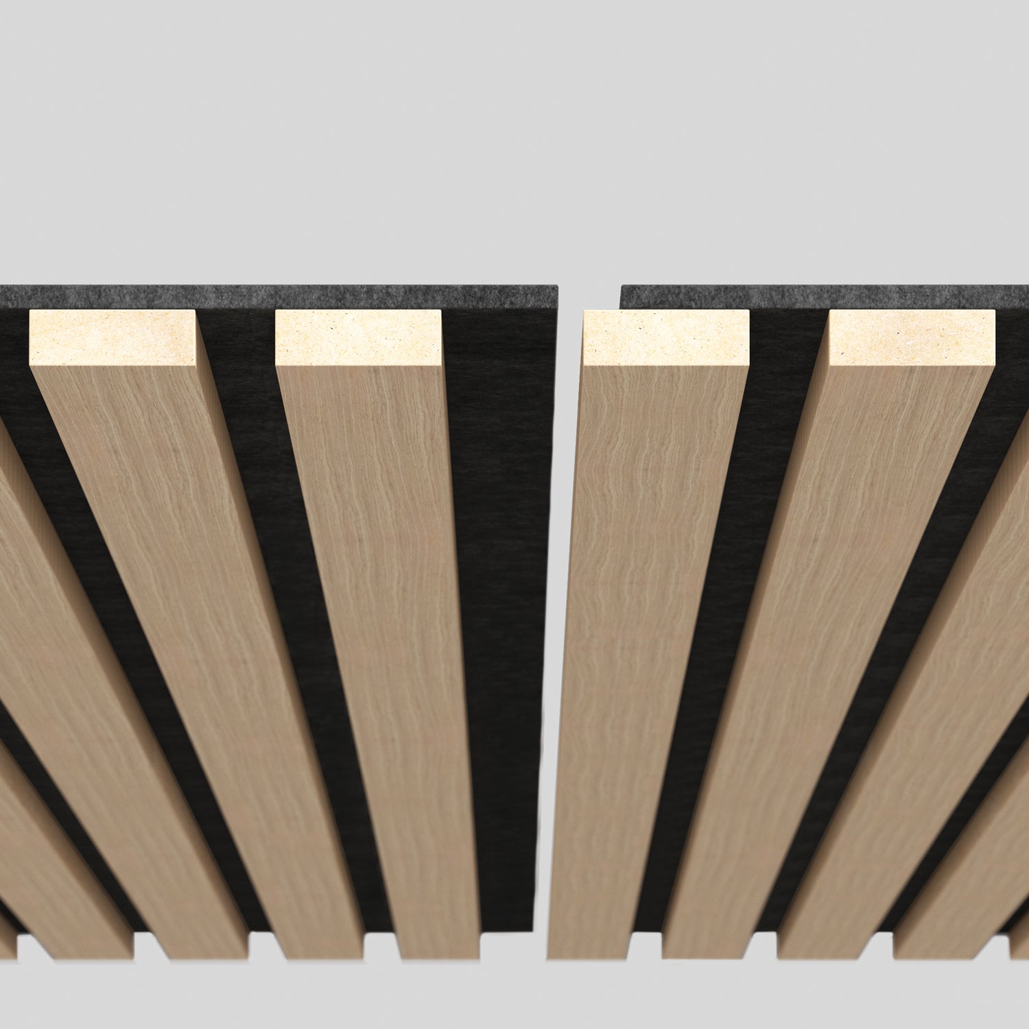 Estos paneles están fabricados de madera compuesta (MDF) con enchapado y fieltro, se instalan fácilmente en las paredes y techos. Comprende además de los 2 paneles de 8 pi x 2 pi, 2 listones de acabado (para los lados izquierdo y derecho) y 50 pastillas de fieltro. Los paneles están doblados en dos en la caja para facilitar el transporte.