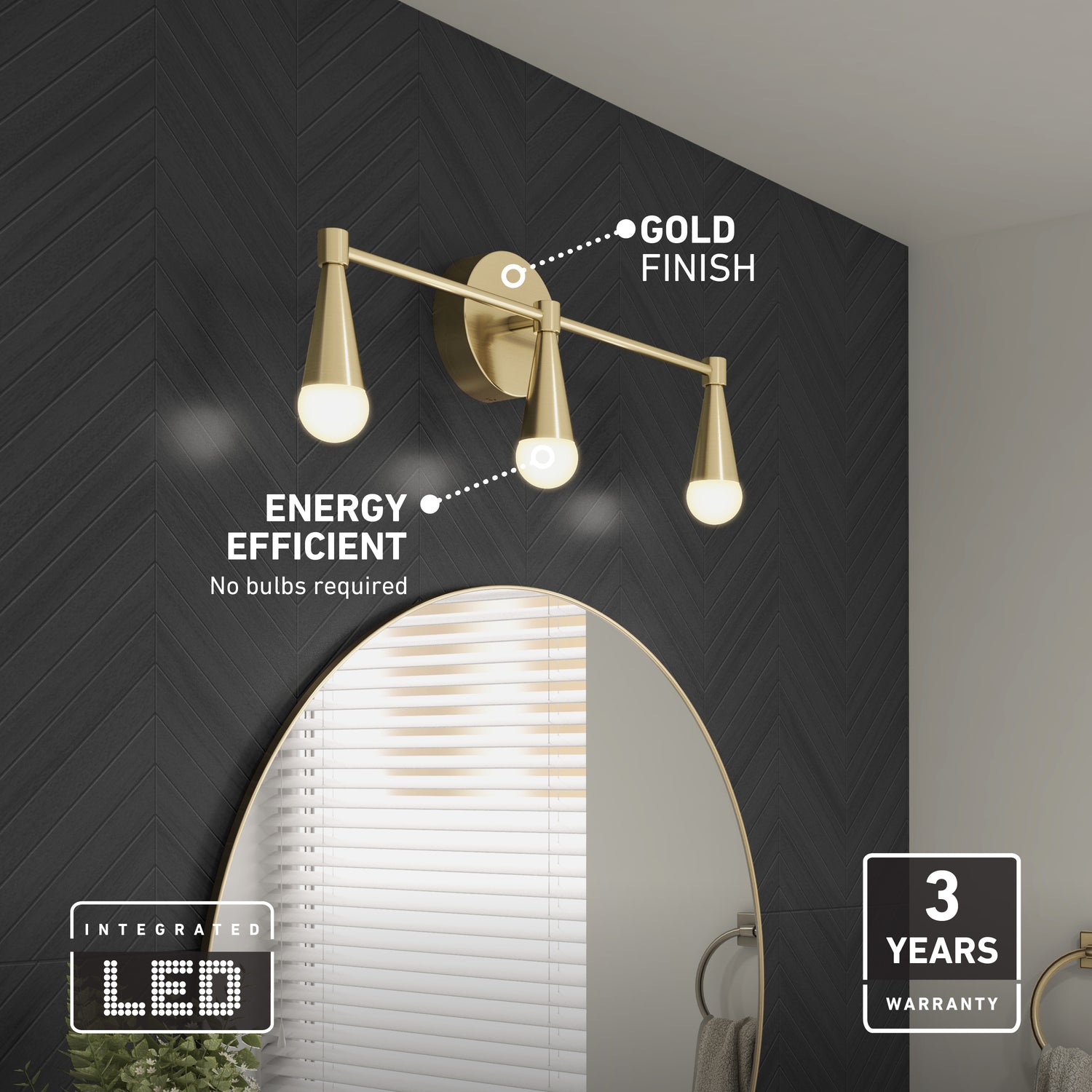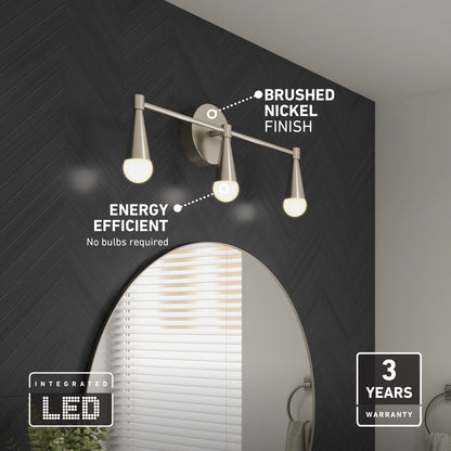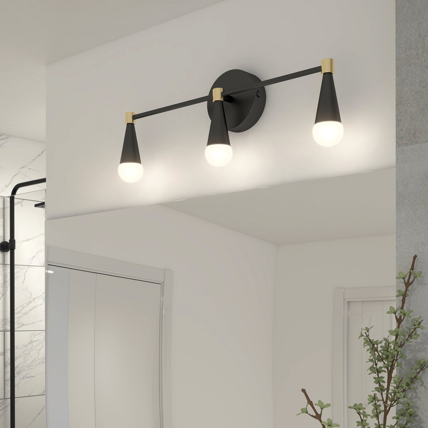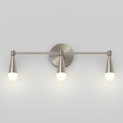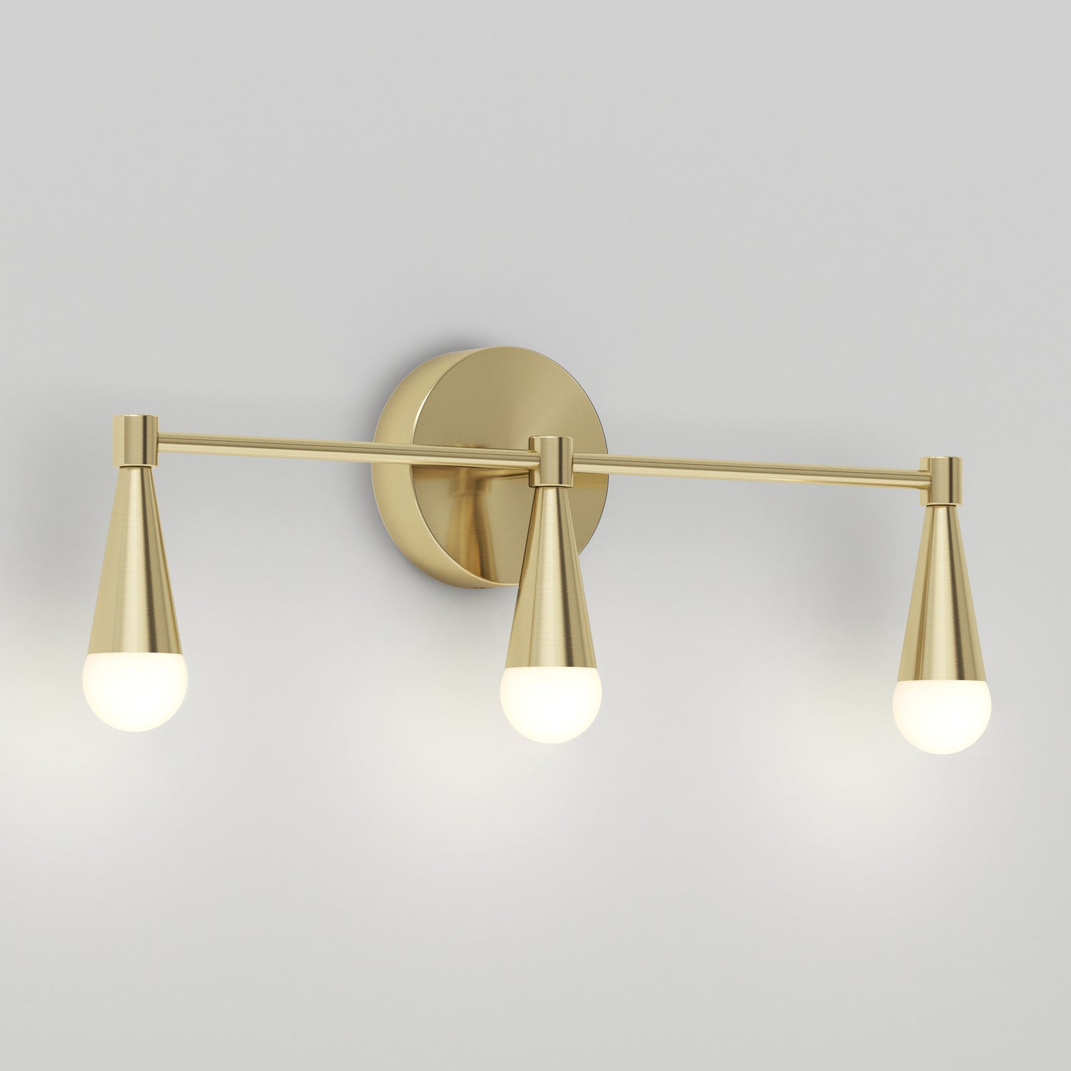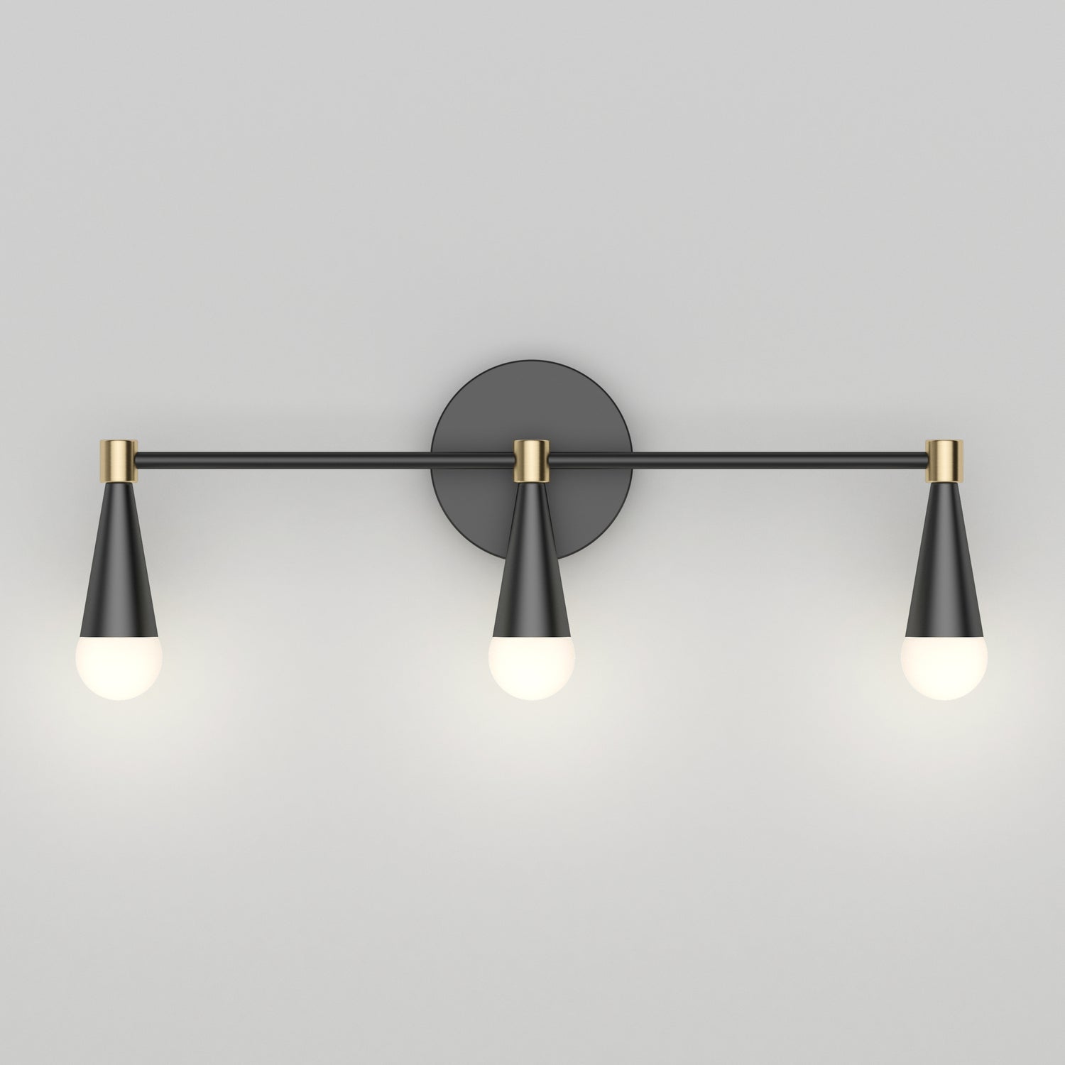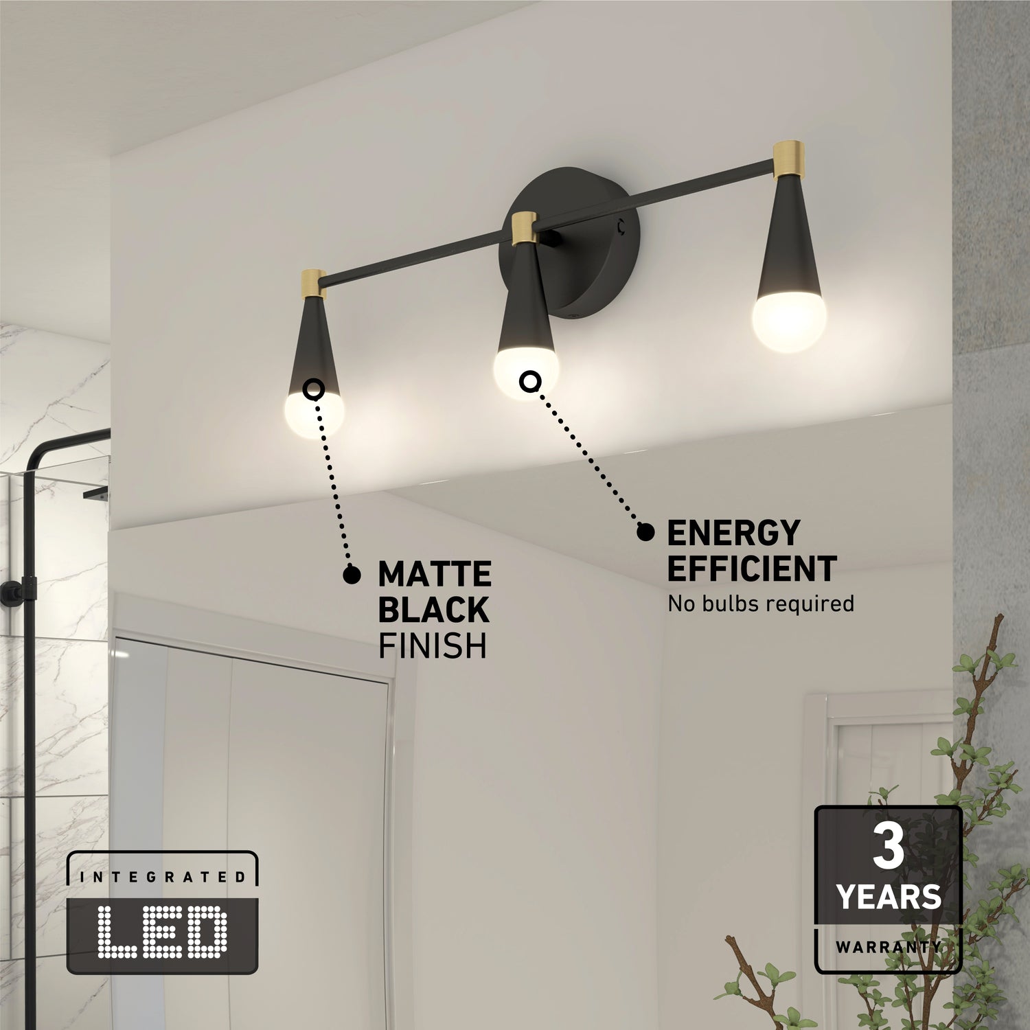 Este aplique de pared con luz led integrada consiste en 3 focos en forma de conos invertidos que se adaptan tanto a los decorados modernos como a los contemporáneos, transicionales o clásicos. Lucirá sobre el mueble de tocador de un baño pequeño o aseo.