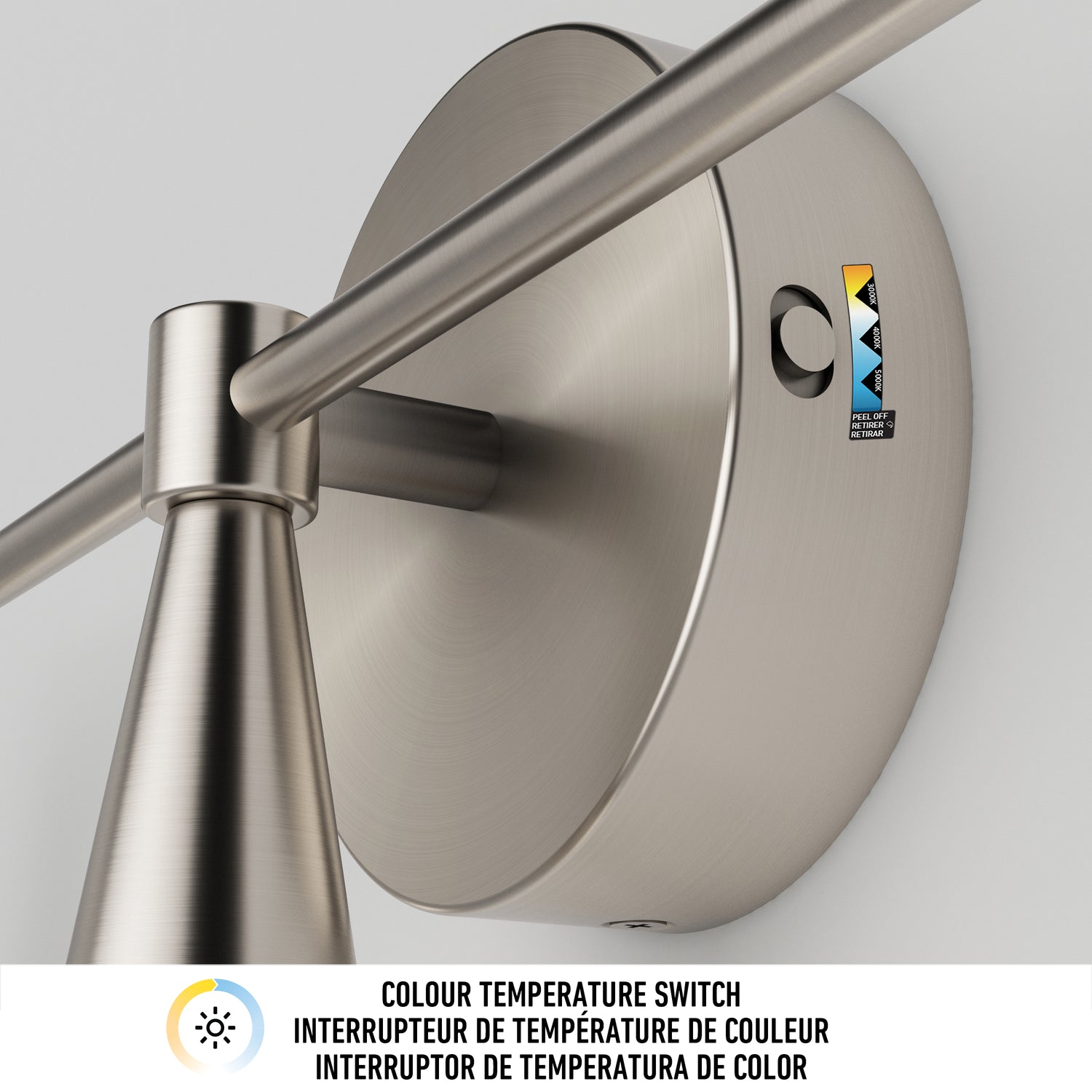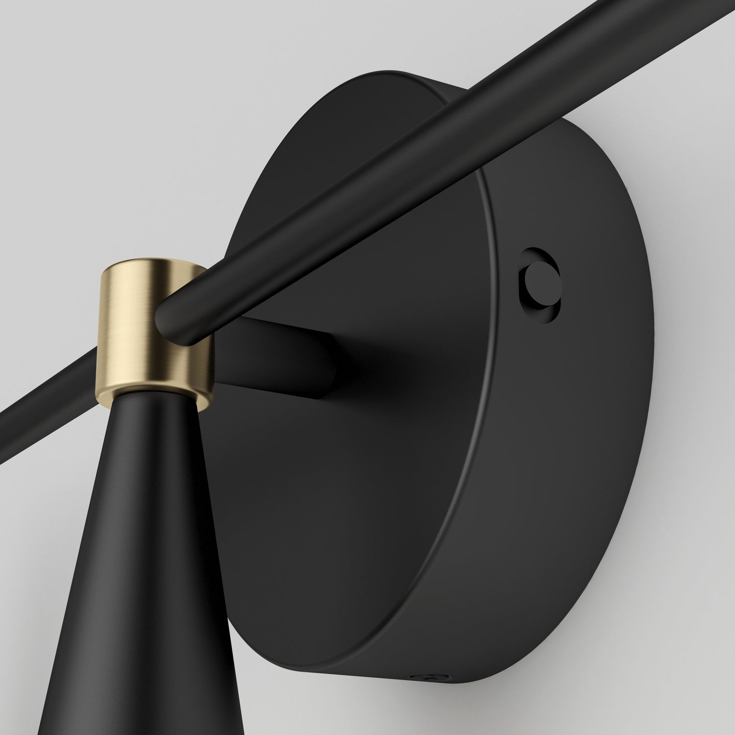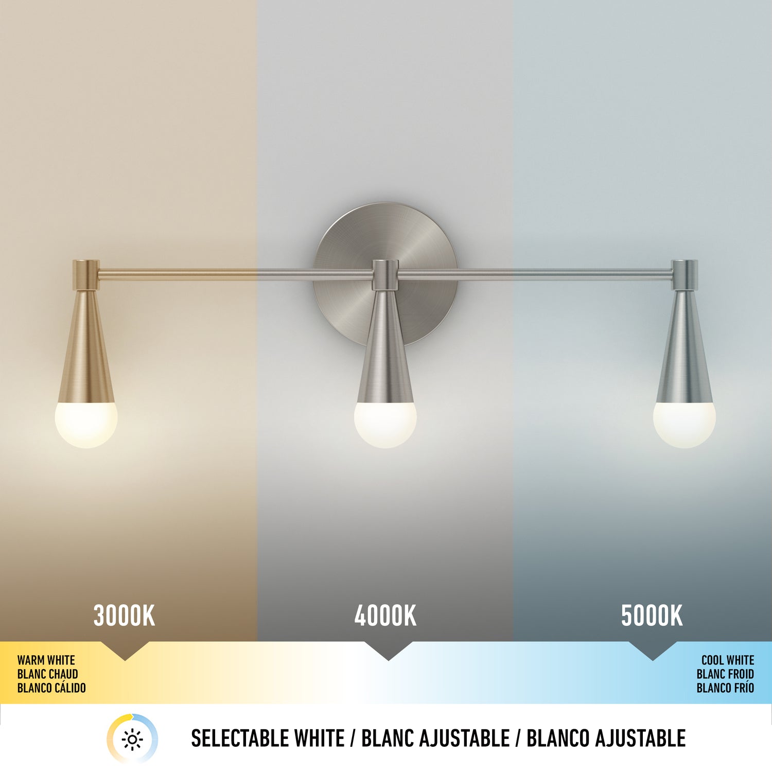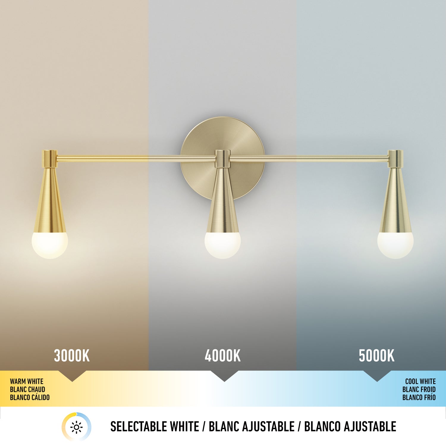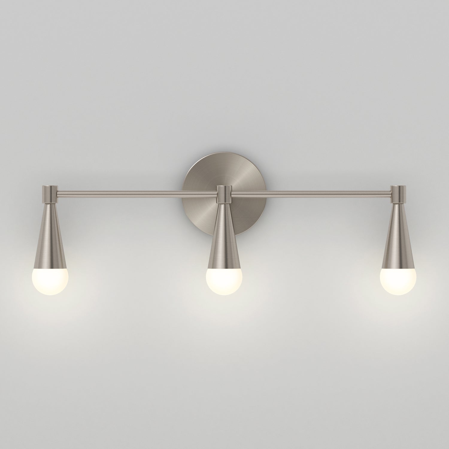 Este aplique de pared con luz led integrada consiste en 3 focos en forma de conos invertidos que se adaptan tanto a los decorados modernos como a los contemporáneos, transicionales o clásicos. Lucirá sobre el mueble de tocador de un baño pequeño o aseo.