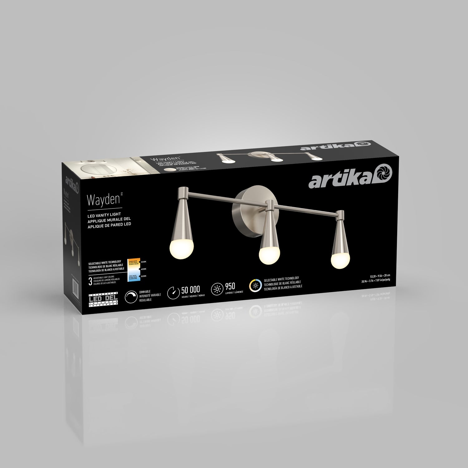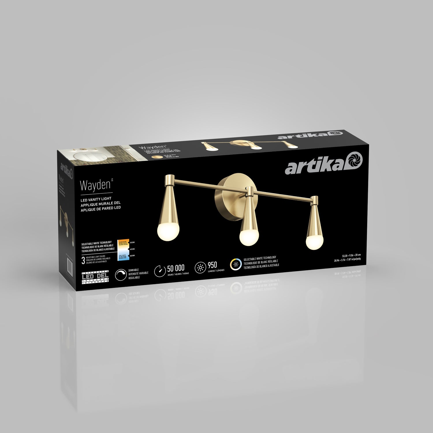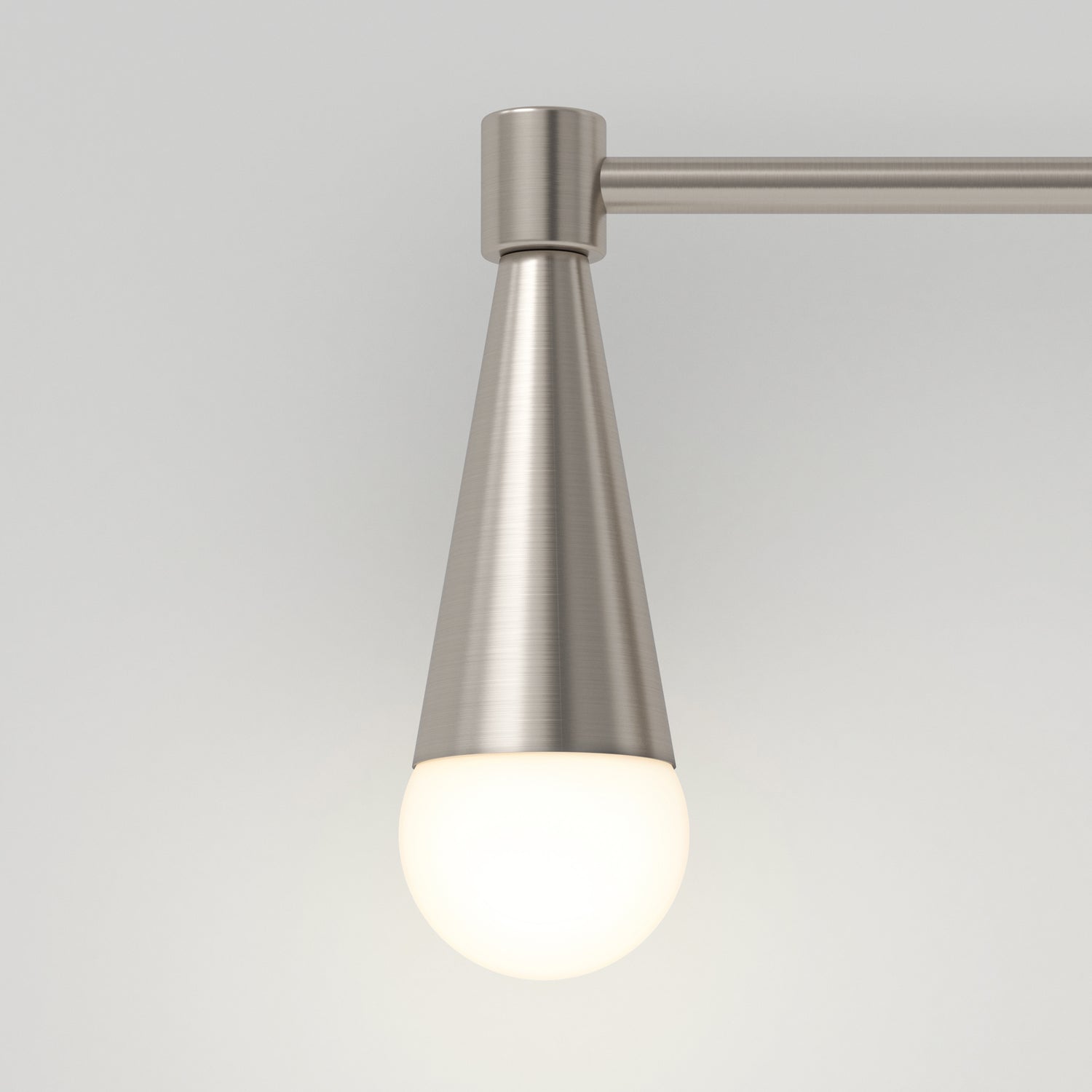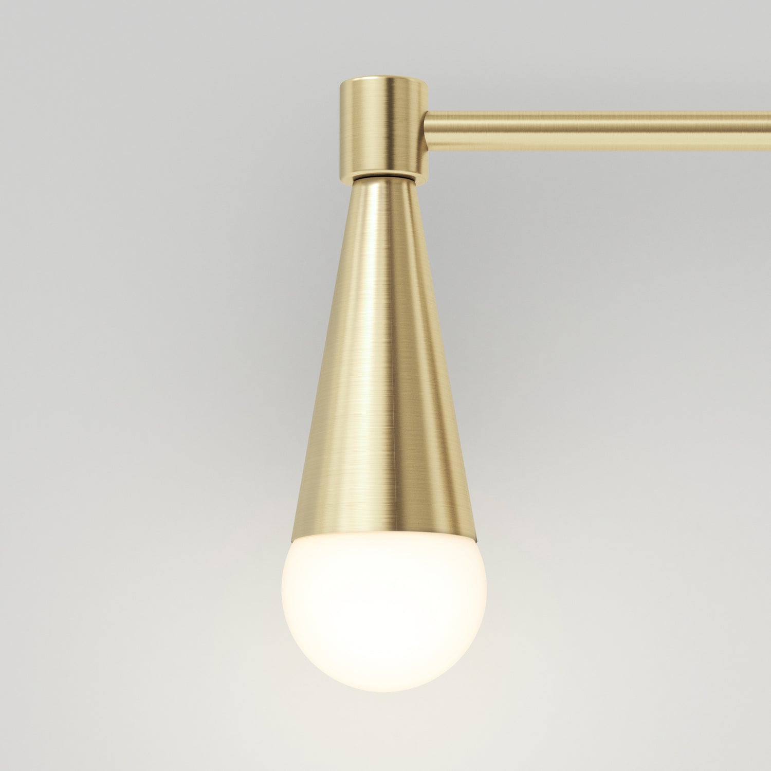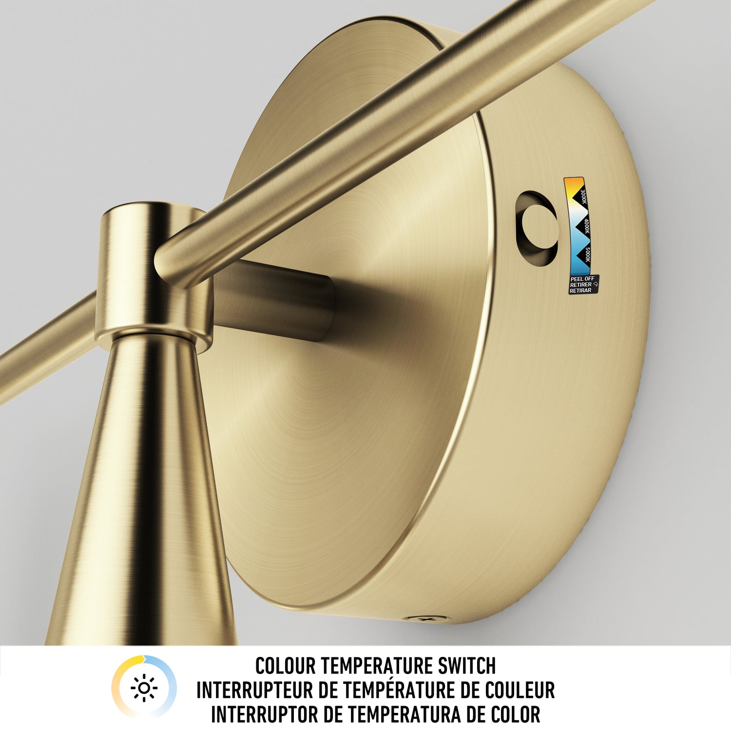 Este aplique de pared con luz led integrada consiste en 3 focos en forma de conos invertidos que se adaptan tanto a los decorados modernos como a los contemporáneos, transicionales o clásicos. Lucirá sobre el mueble de tocador de un baño pequeño o aseo.