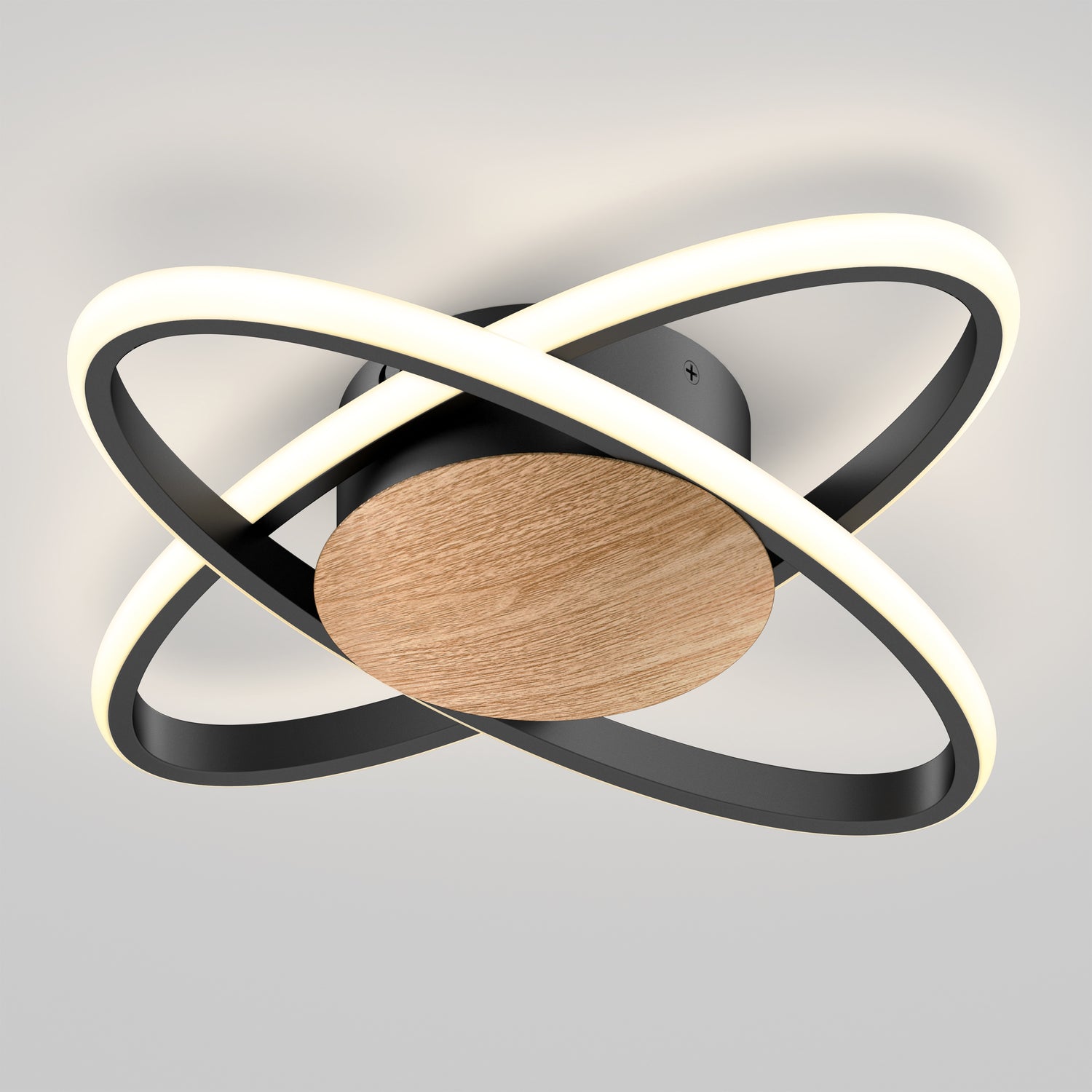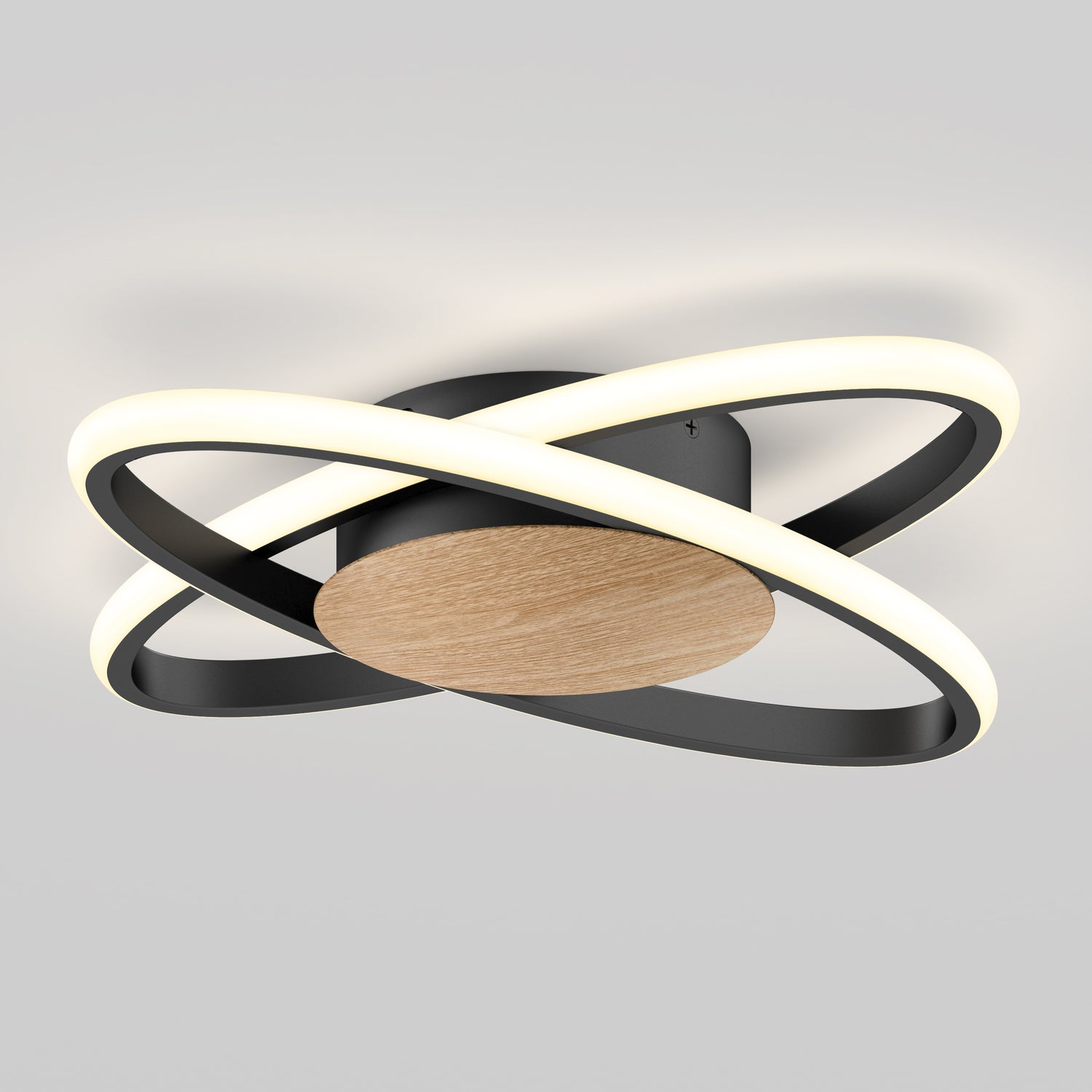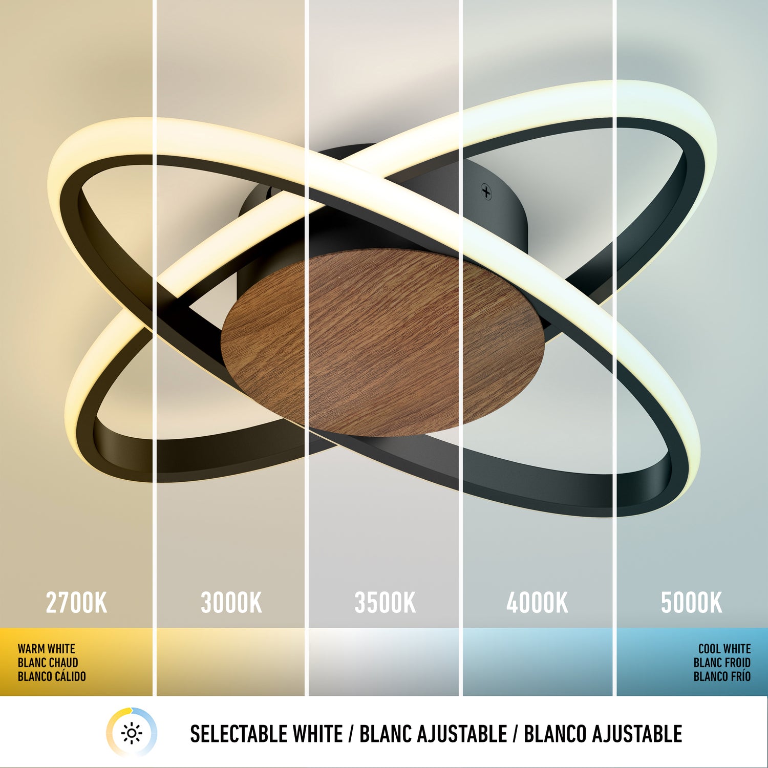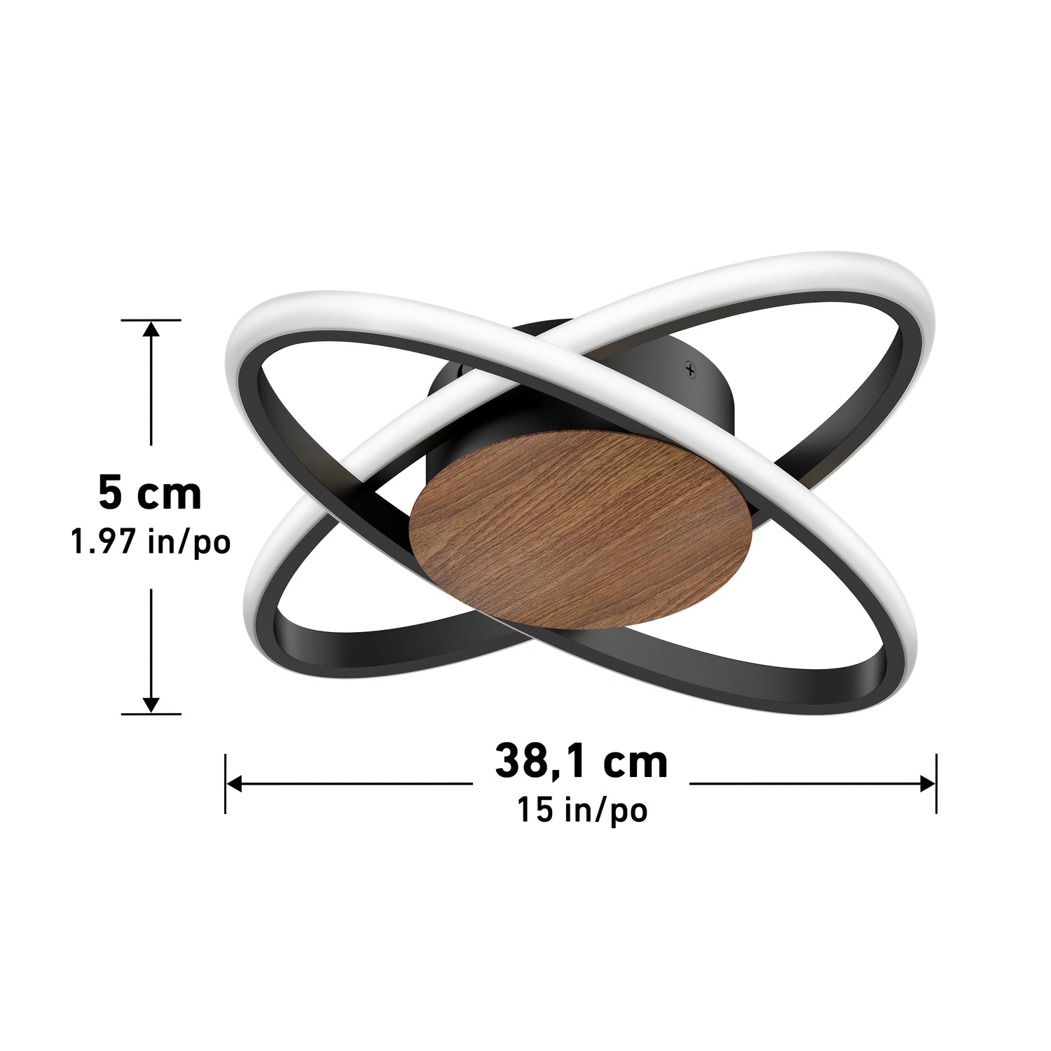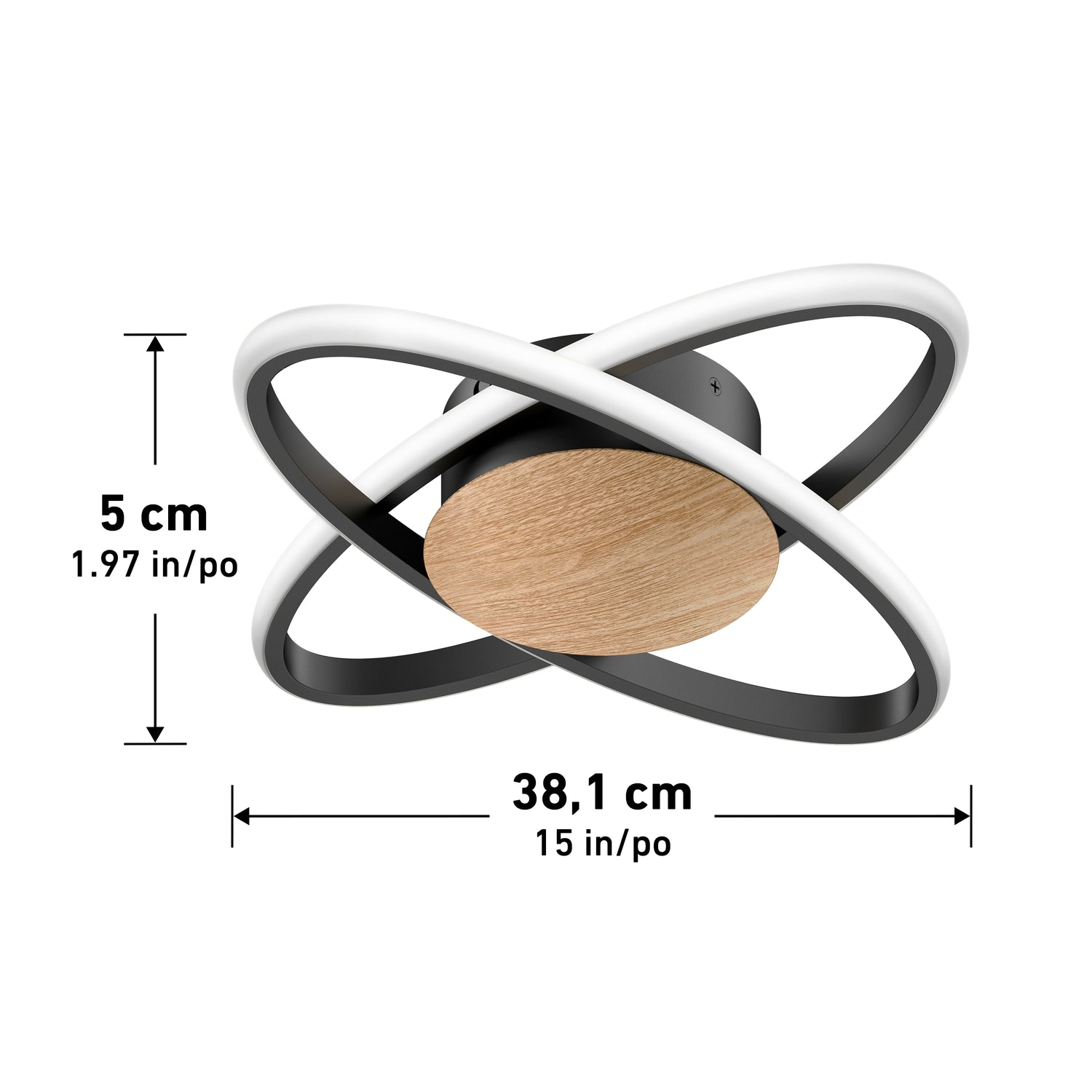 Inspiré de l’atome, le design de ce plafonnier à DEL intégrée envoûtera par ses anneaux illuminés entrecroisés, retenus par leur centre au fini bois peint. Installez-le dans les chambres à coucher, le bureau, la salle d’eau ou dans toute autre pièce de petite ou moyenne dimensions nécessitant un éclairage uniforme.