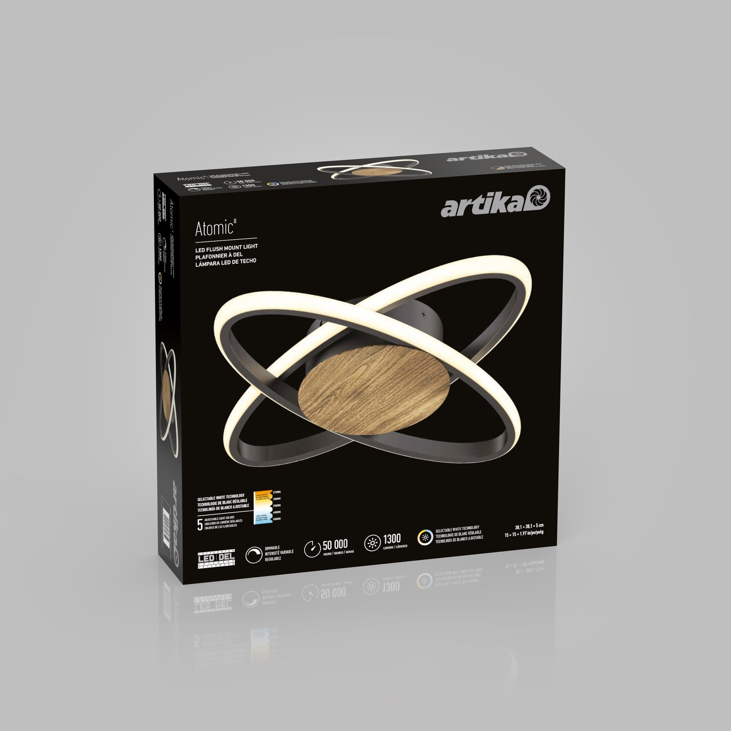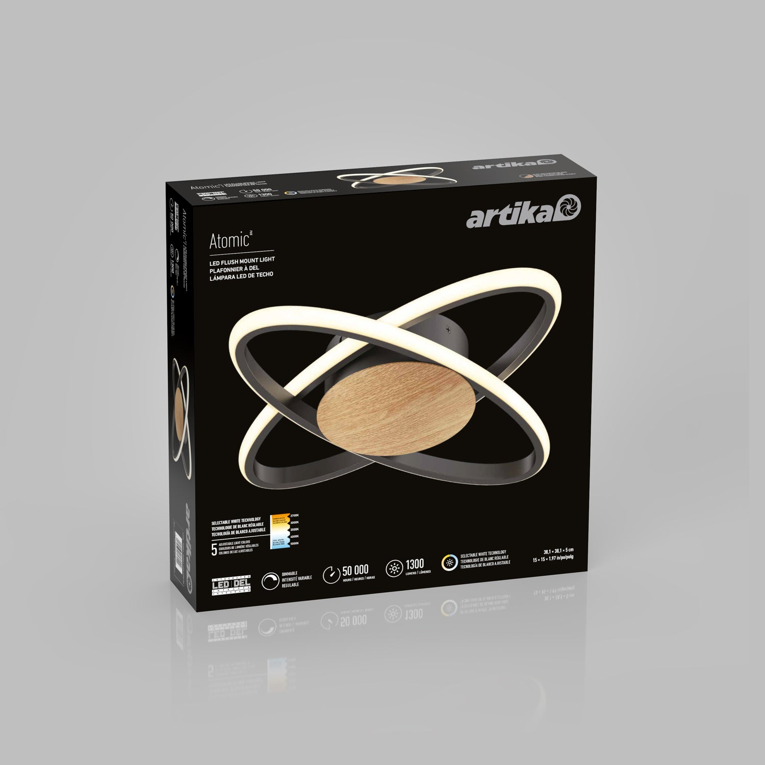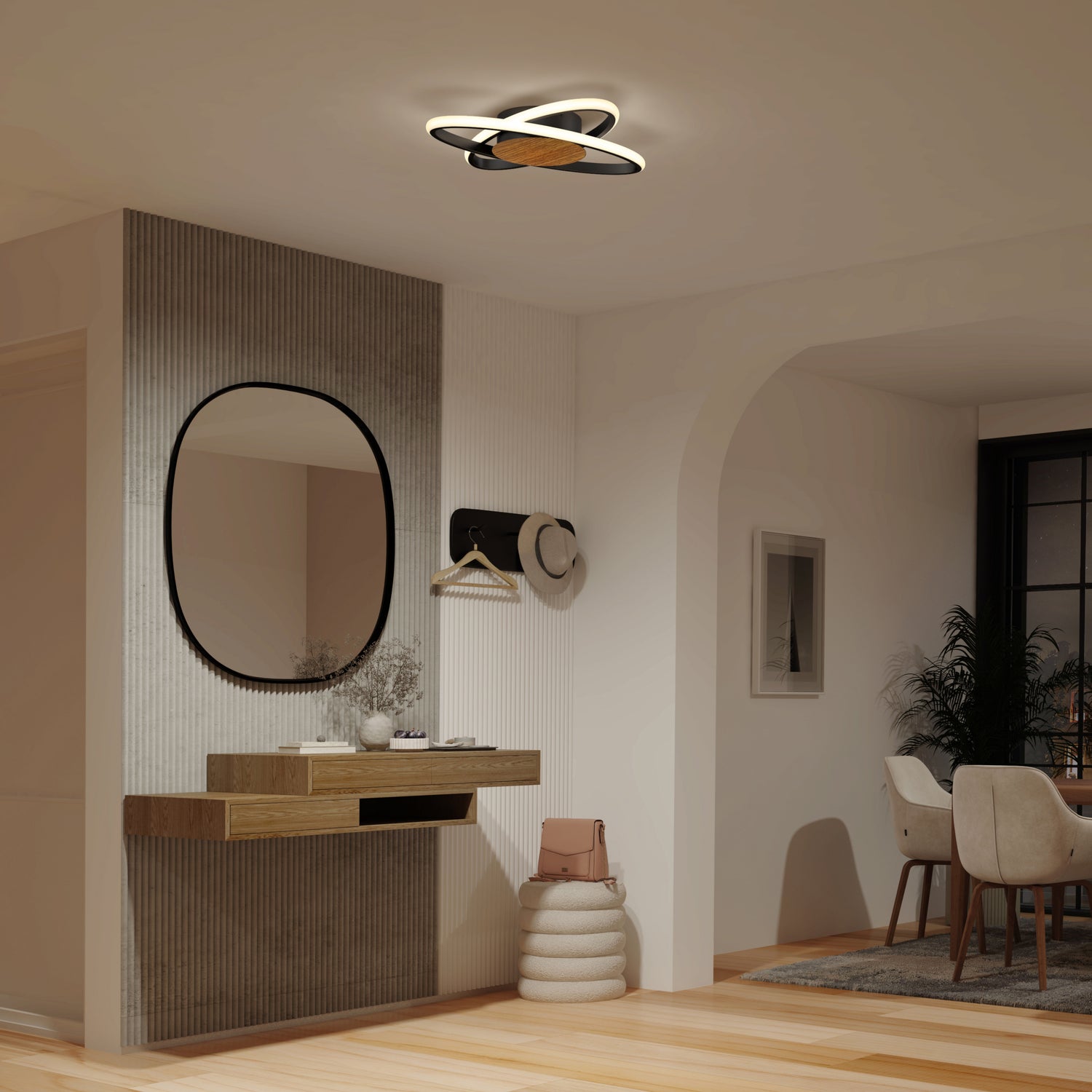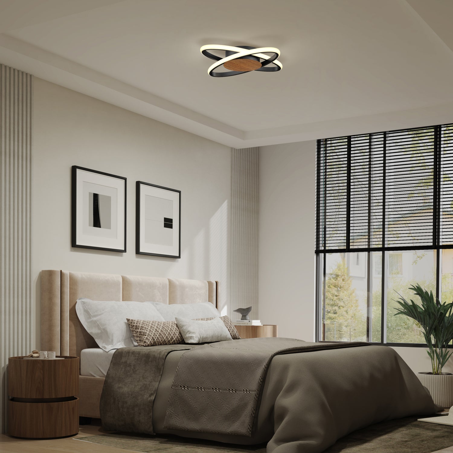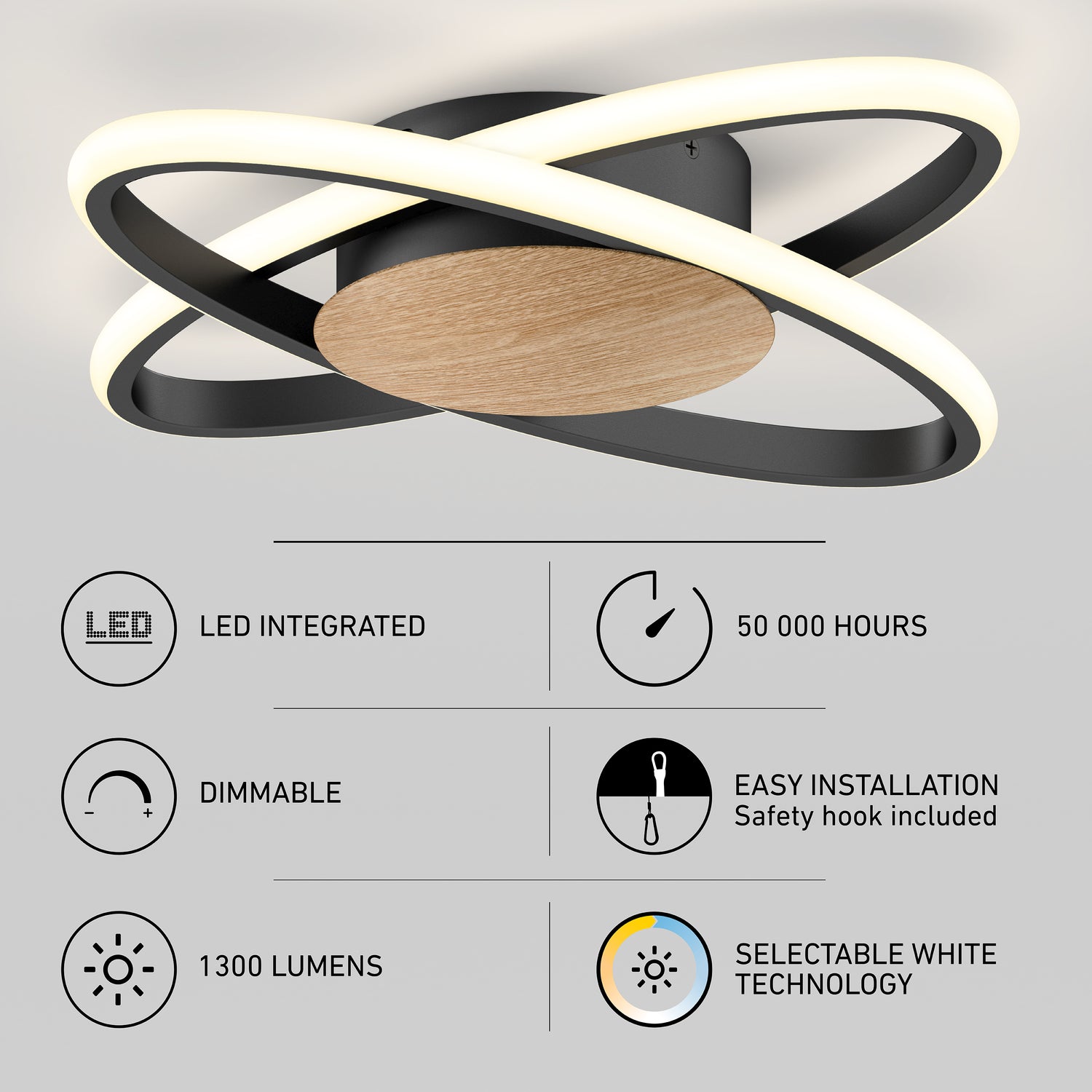 Inspiré de l’atome, le design de ce plafonnier à DEL intégrée envoûtera par ses anneaux illuminés entrecroisés, retenus par leur centre au fini bois peint. Installez-le dans les chambres à coucher, le bureau, la salle d’eau ou dans toute autre pièce de petite ou moyenne dimensions nécessitant un éclairage uniforme.