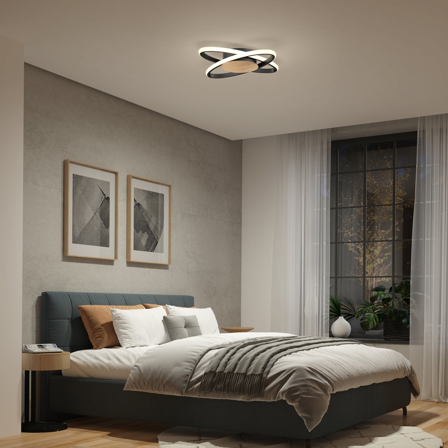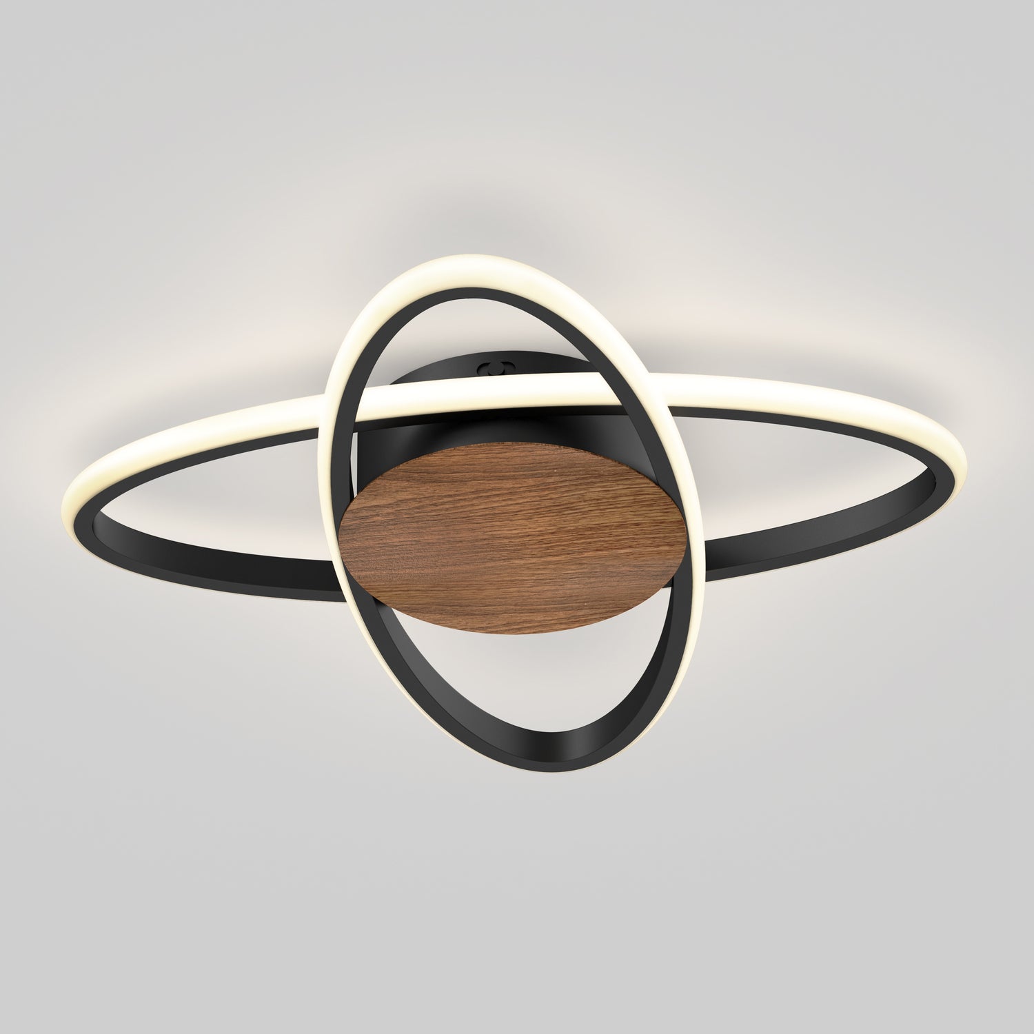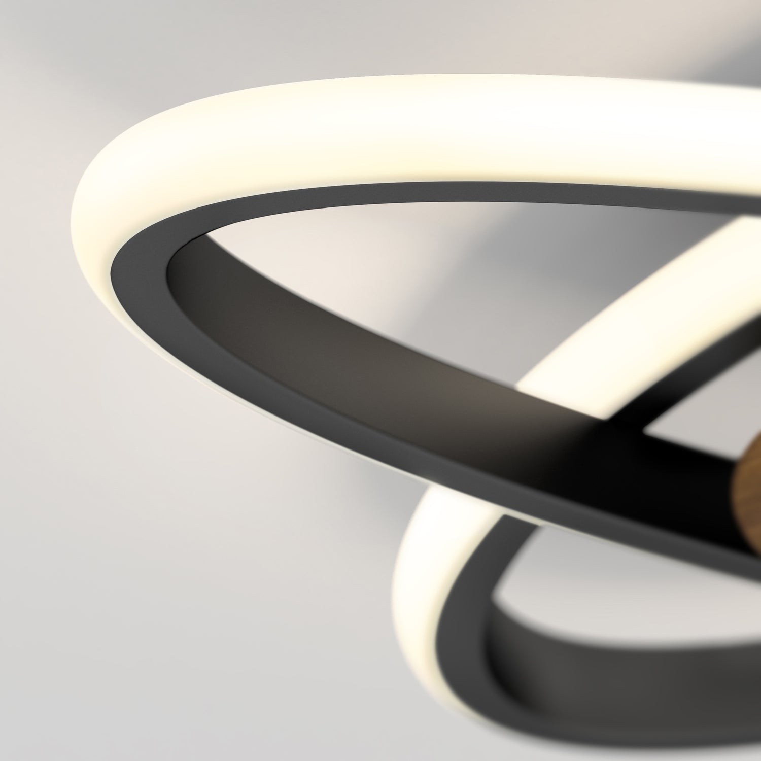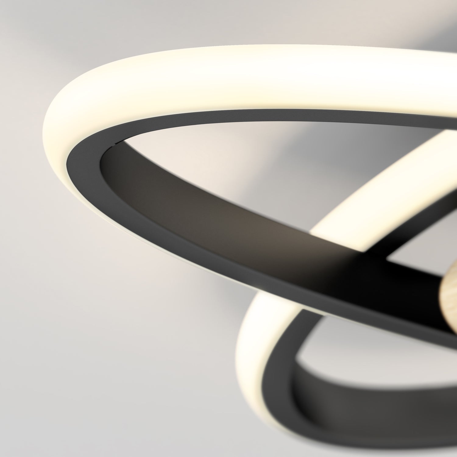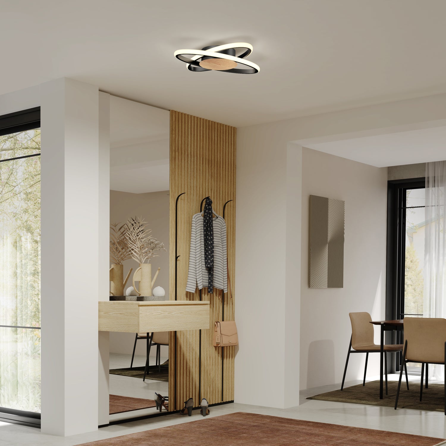 Inspiré de l’atome, le design de ce plafonnier à DEL intégrée envoûtera par ses anneaux illuminés entrecroisés, retenus par leur centre au fini bois peint. Installez-le dans les chambres à coucher, le bureau, la salle d’eau ou dans toute autre pièce de petite ou moyenne dimensions nécessitant un éclairage uniforme.