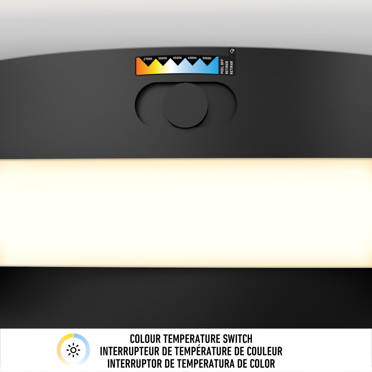 D’une puissance de 1300 lumens, ce plafonnier est compatible avec la majorité des gradateurs à DEL, vous laissant ainsi le choix entre différentes intensités selon vos besoins et envies. Il est aussi muni de la technologie de blanc réglable : 5 teintes sont disponibles et facilement sélectionnables. Durée de vie : 50 000 heures.