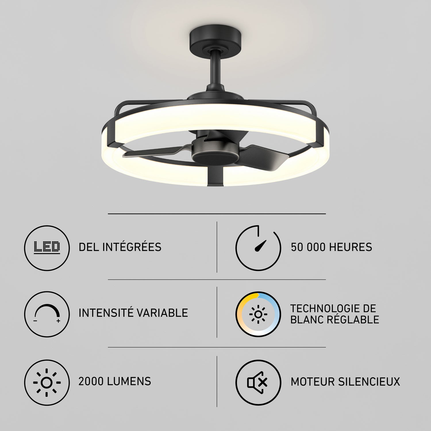 Sunnyvale ventilateur moderne 23 po. à DEL - avec télécommande