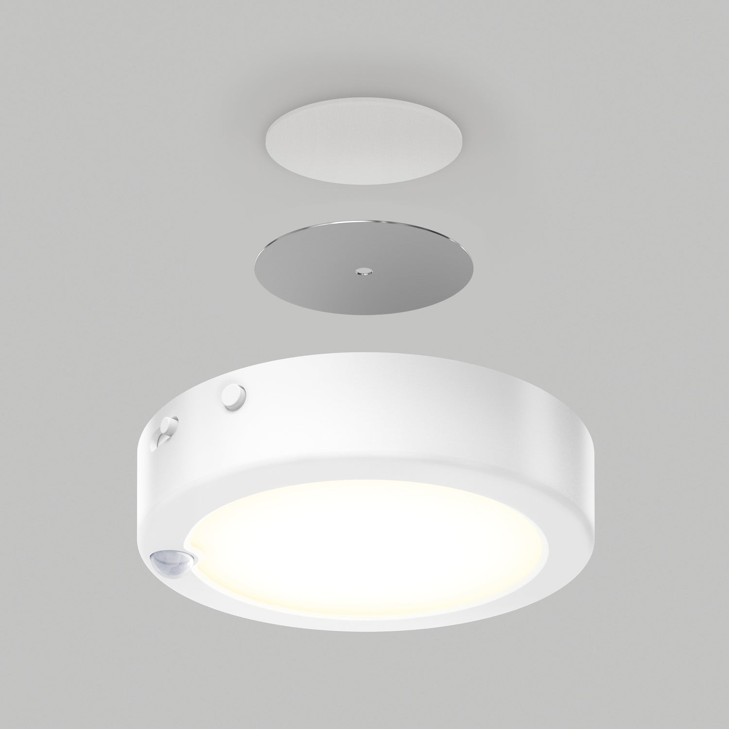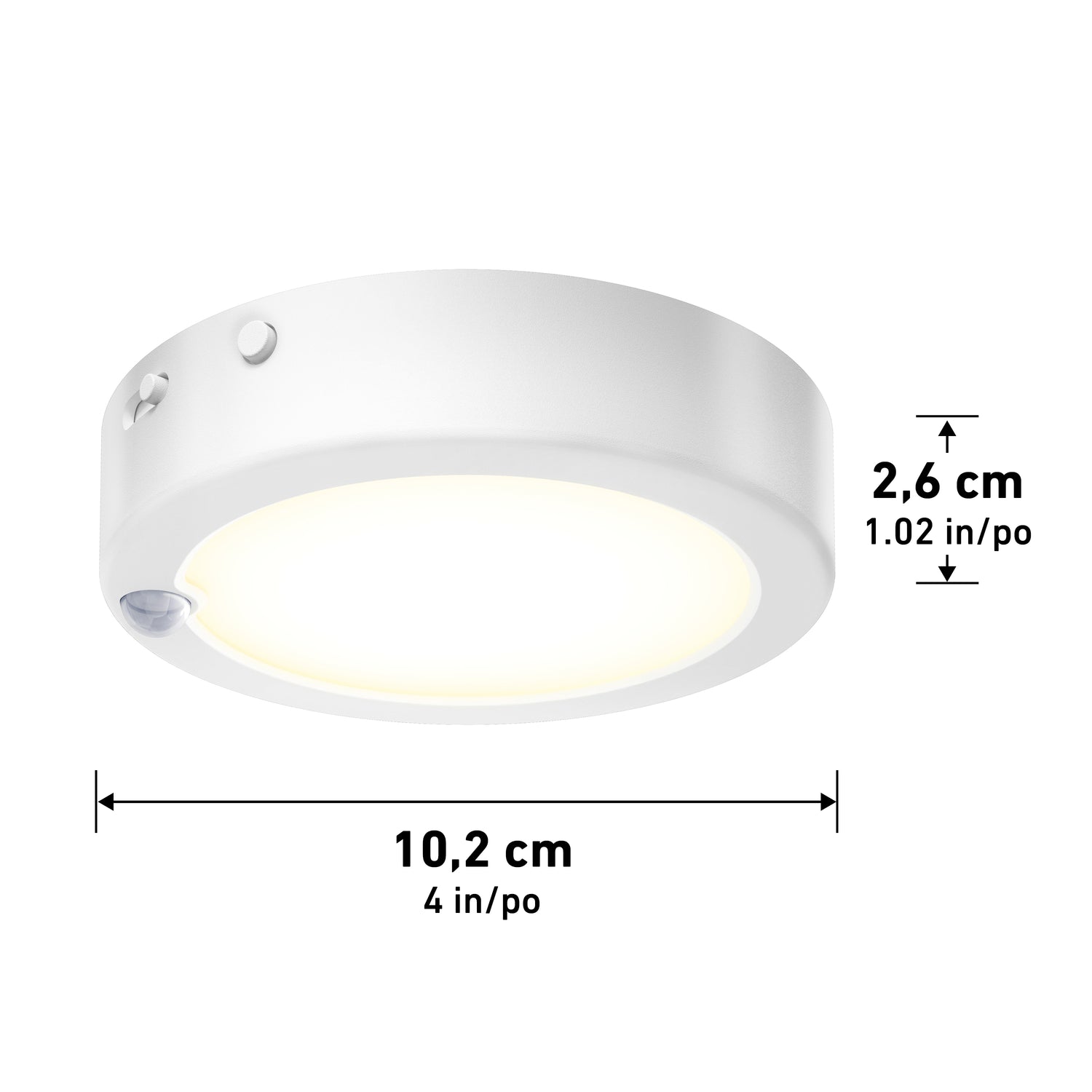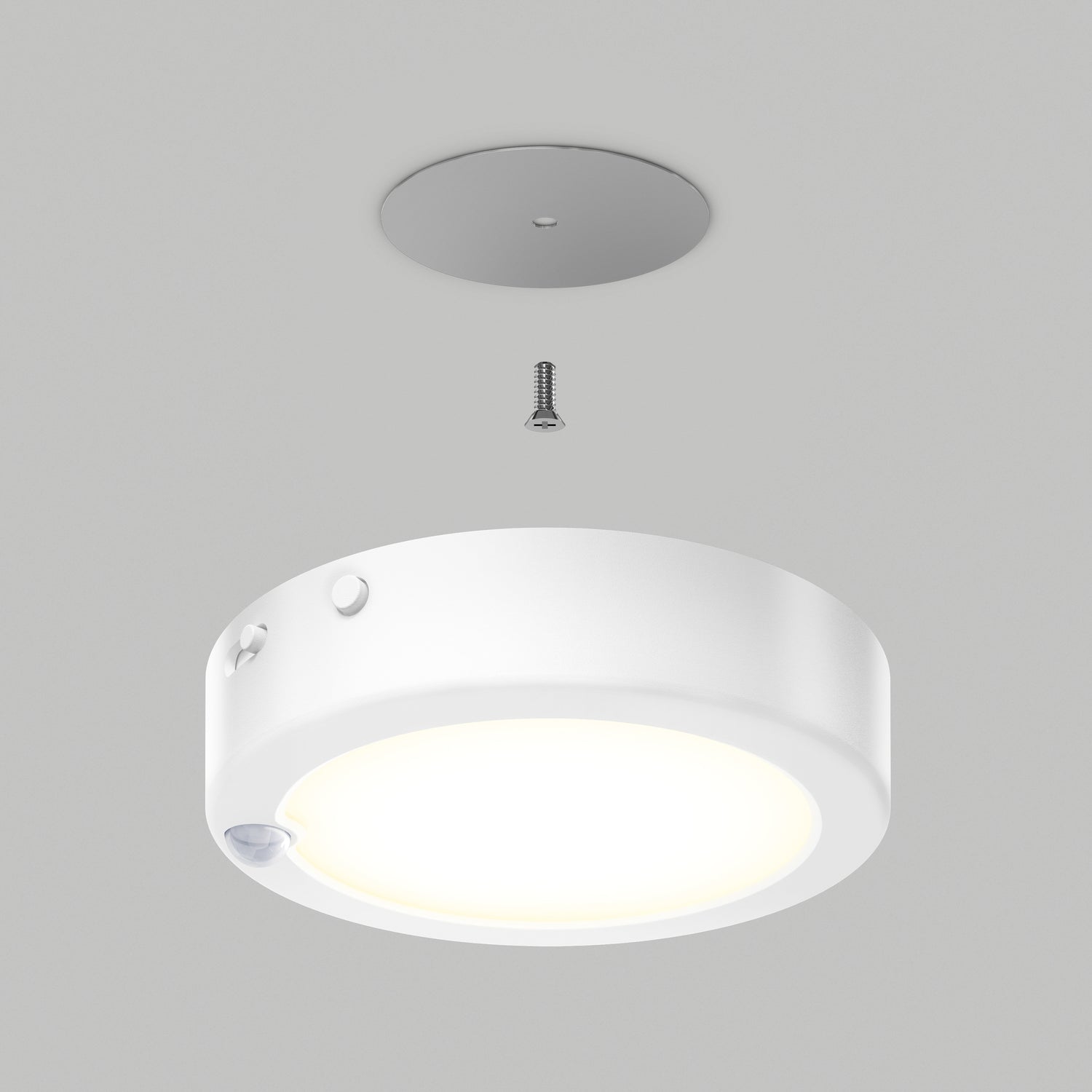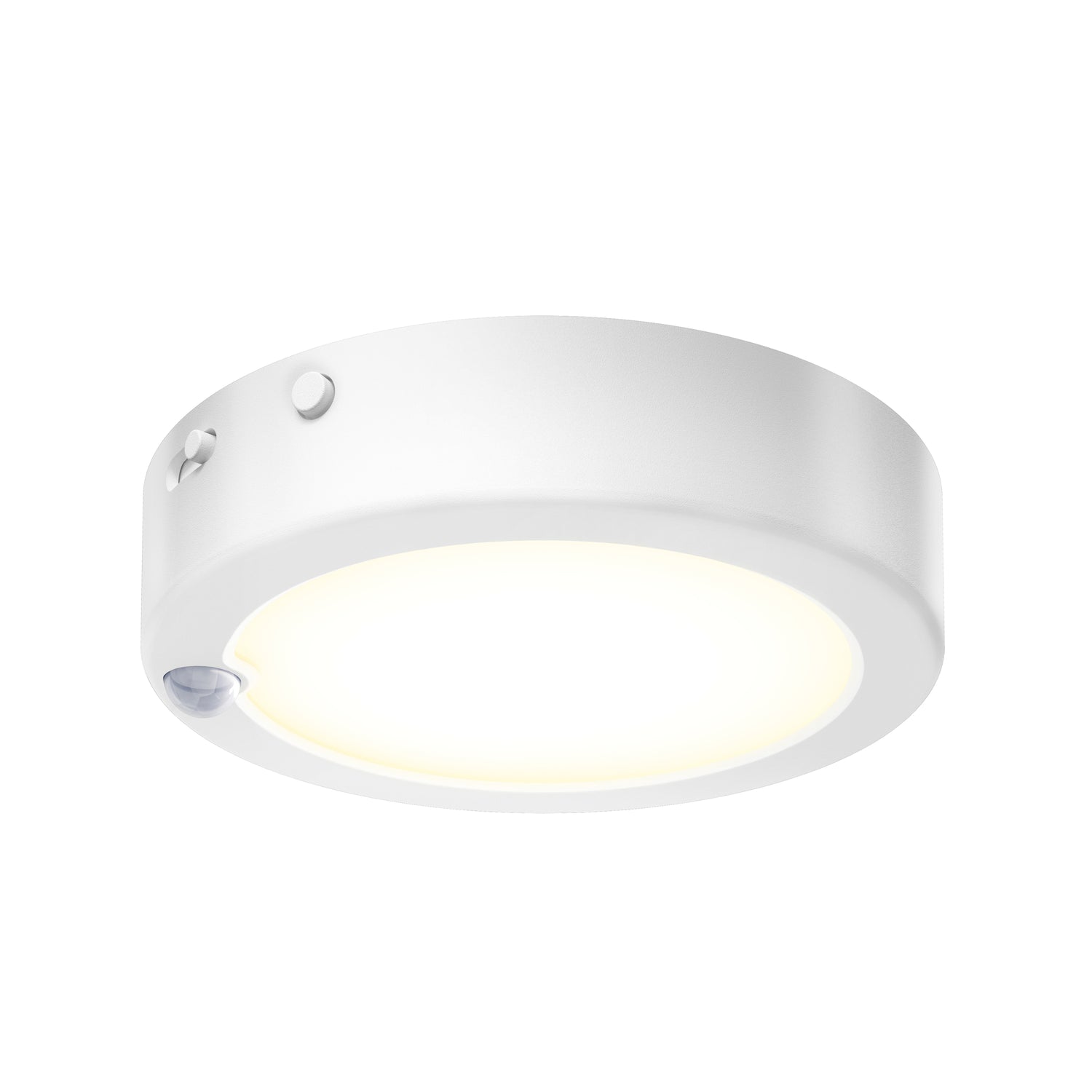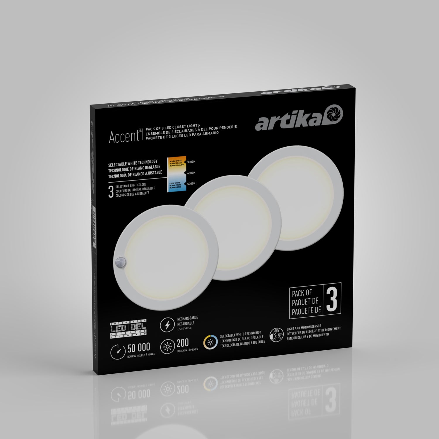 Artika Accent under cabinet LED light 3CCT with a glowing center and small sensor on the edge, mounted on a plain gray ceiling.