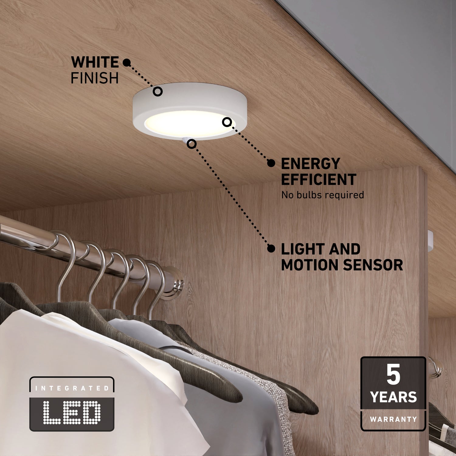This set of three LED closet lights provides a practical and elegant lighting solution for walk-in closets. Install them above rods or dressers to create a stylish mini showroom.