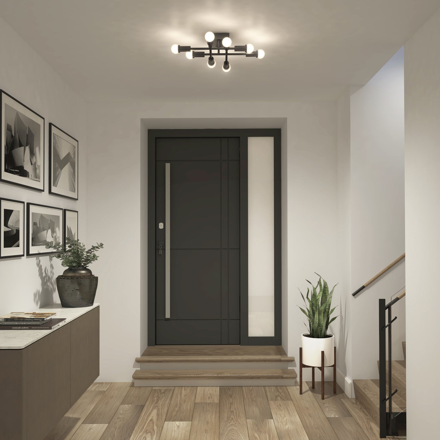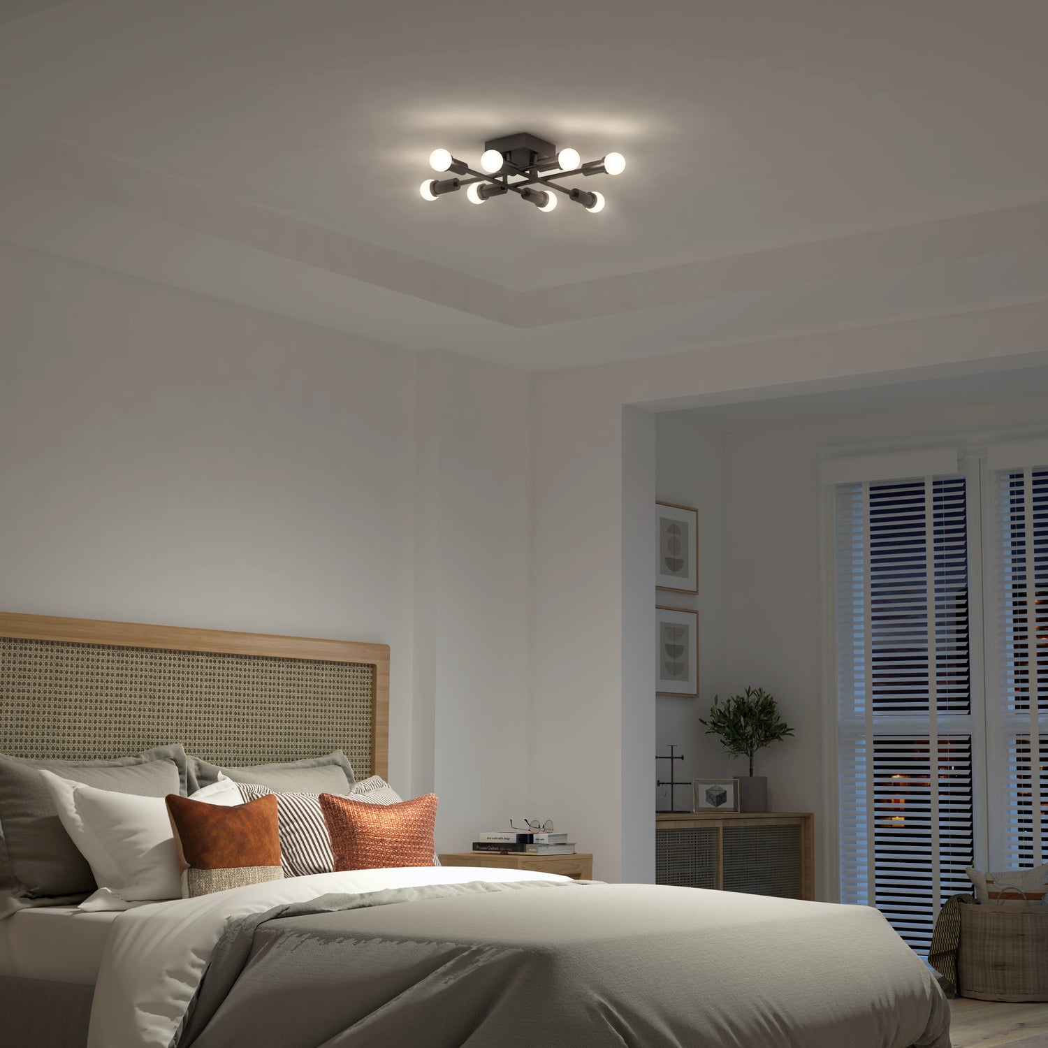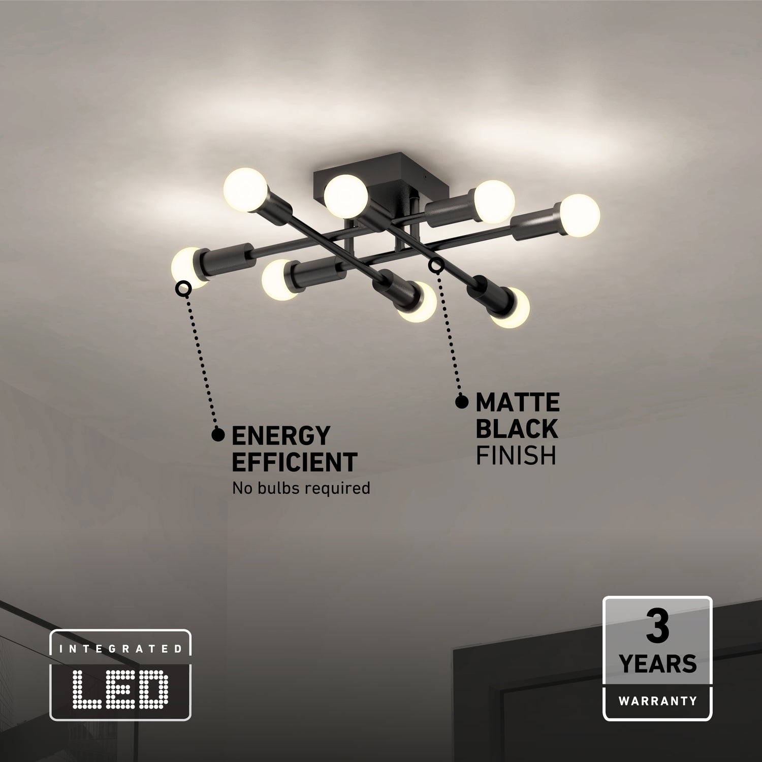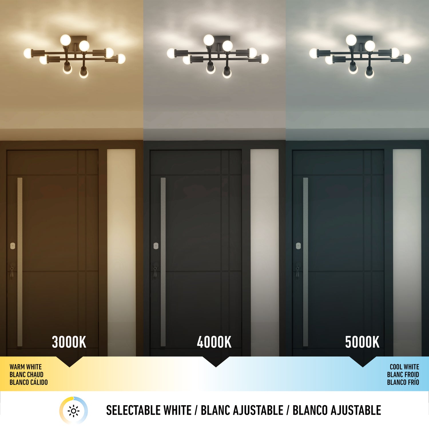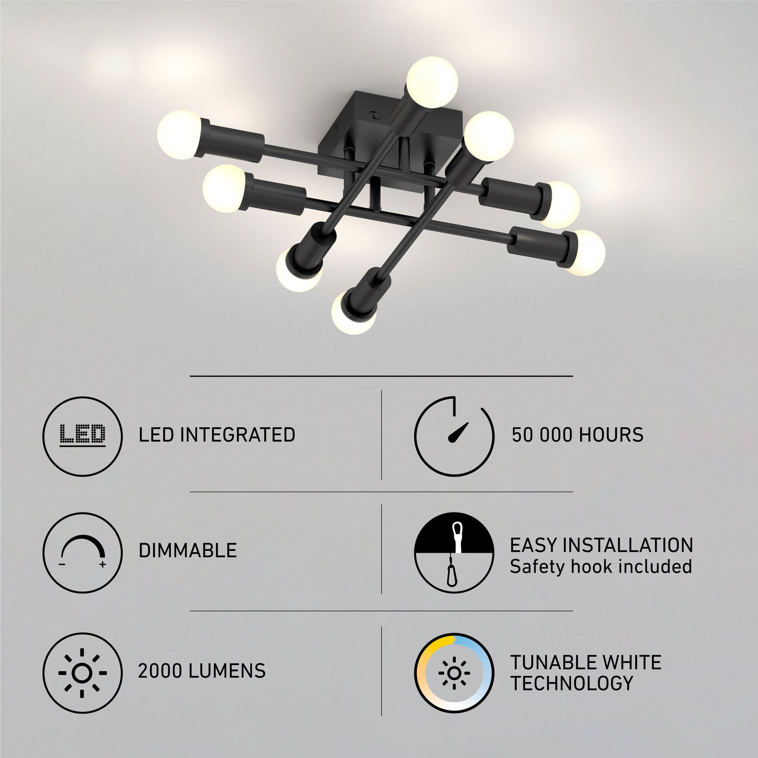 Shaped like a hash sign, this LED ceiling light looks great in all kinds of settings, contemporary or otherwise. Its matte black finish and retro feel with small round bulbs give it a modern look that makes it a great addition to bedrooms, offices, bathrooms, family rooms, and passageways. At 2,000 lumens, this dimmable ceiling light features adjustable colour-temperature technology, inviting you to choose between warm, soft, or cool white. Lifespan: 50,000 hours.