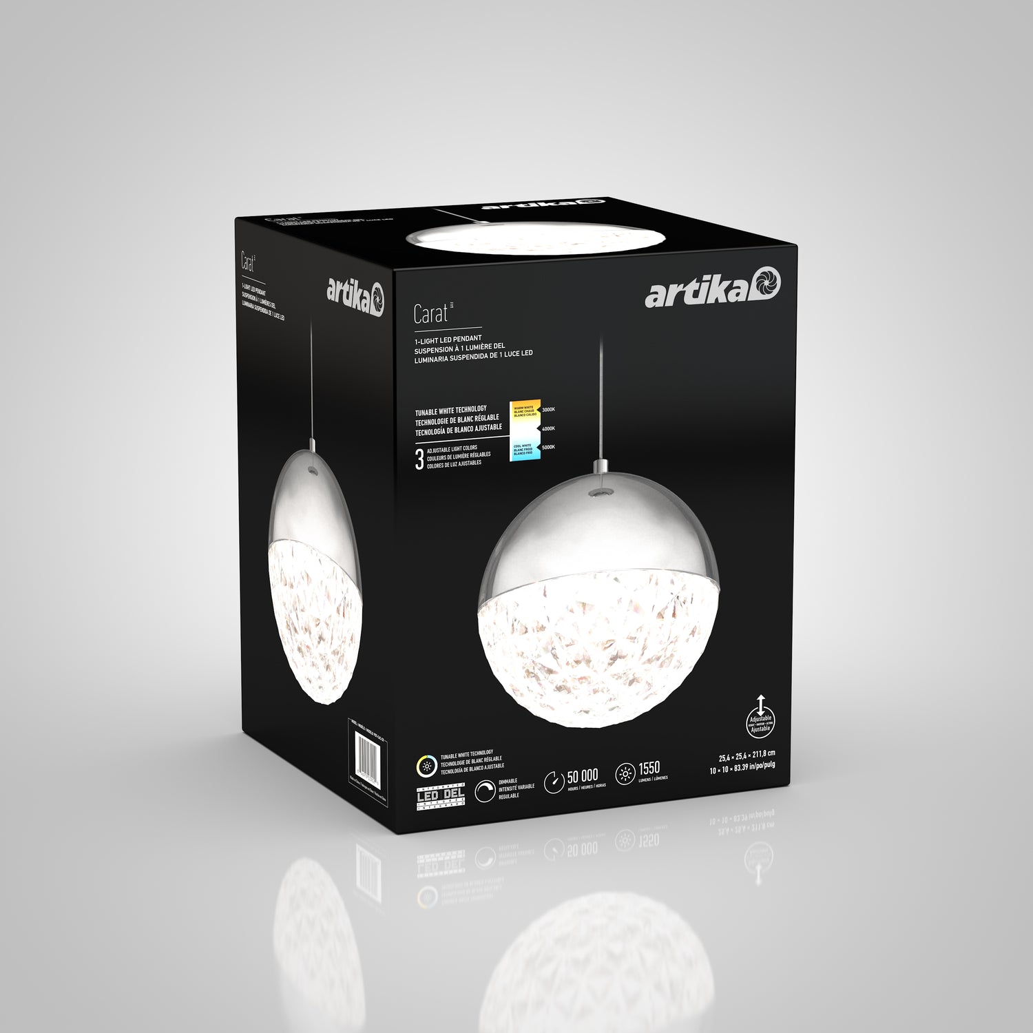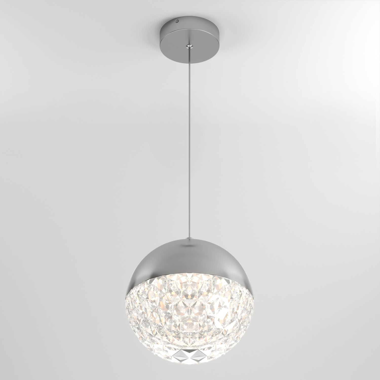 The Artika Carat LED pendant light 3 CCT features a silver metallic dome top and crystal-like textured bottom, suspended by a thin cord against a plain white background.