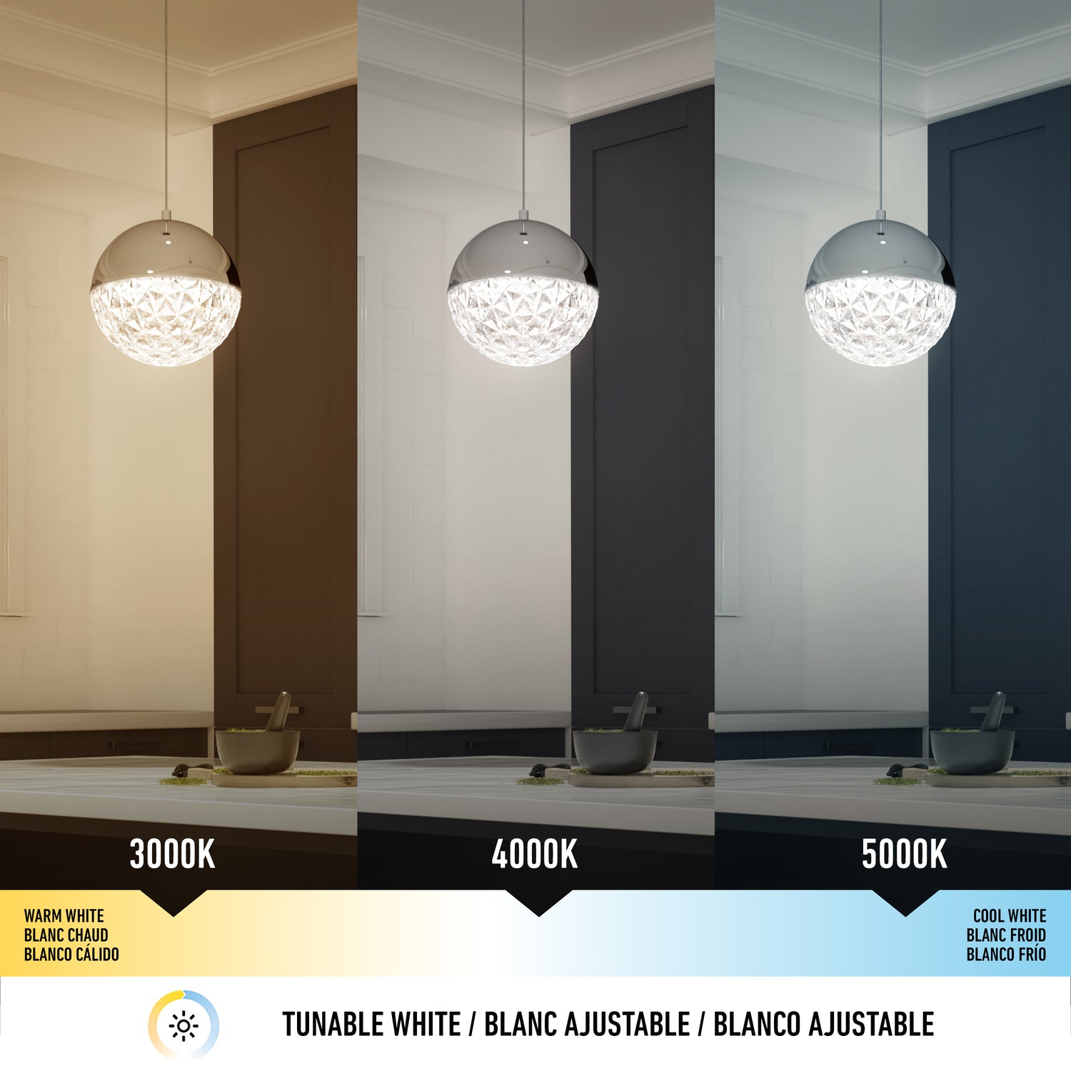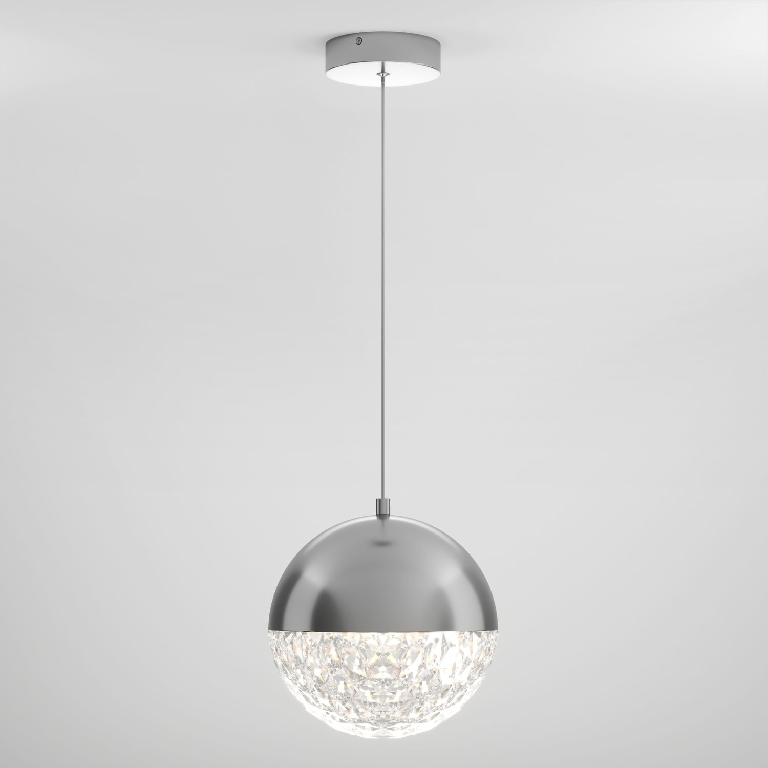 Evoking a diamond falling gracefully from the sky, this single-light LED pendant is all glitz and glamour. Above your counters, this pendant shimmers like a carefully cut stone with its transparent plastic diffuser. Ultra-bright, this LED pendant offers an output of 1,550 lumens and is compatible with LED dimmers. It's also equipped with adjustable colour temperature technology that easily adapts to other surrounding light sources. Maximum height: 83.39 in (211.8 cm); diameter: 10 in (25.4 cm); lifetime: 50,000 hours.