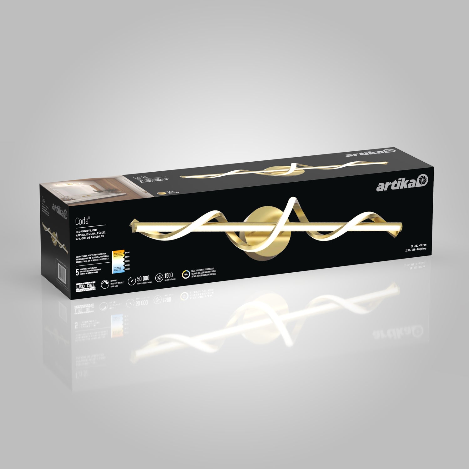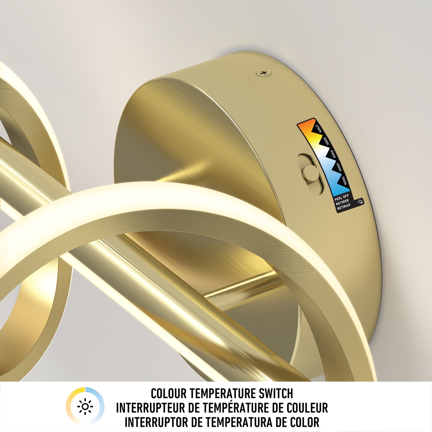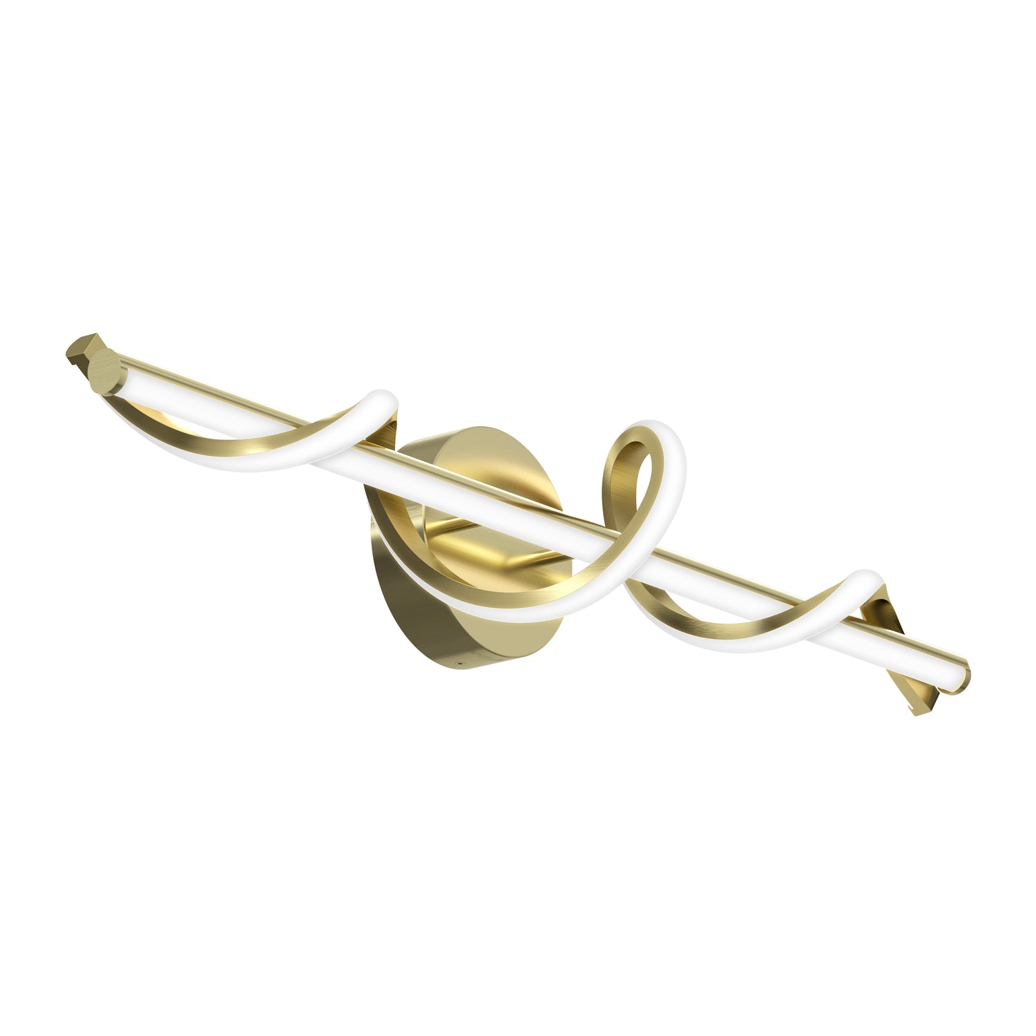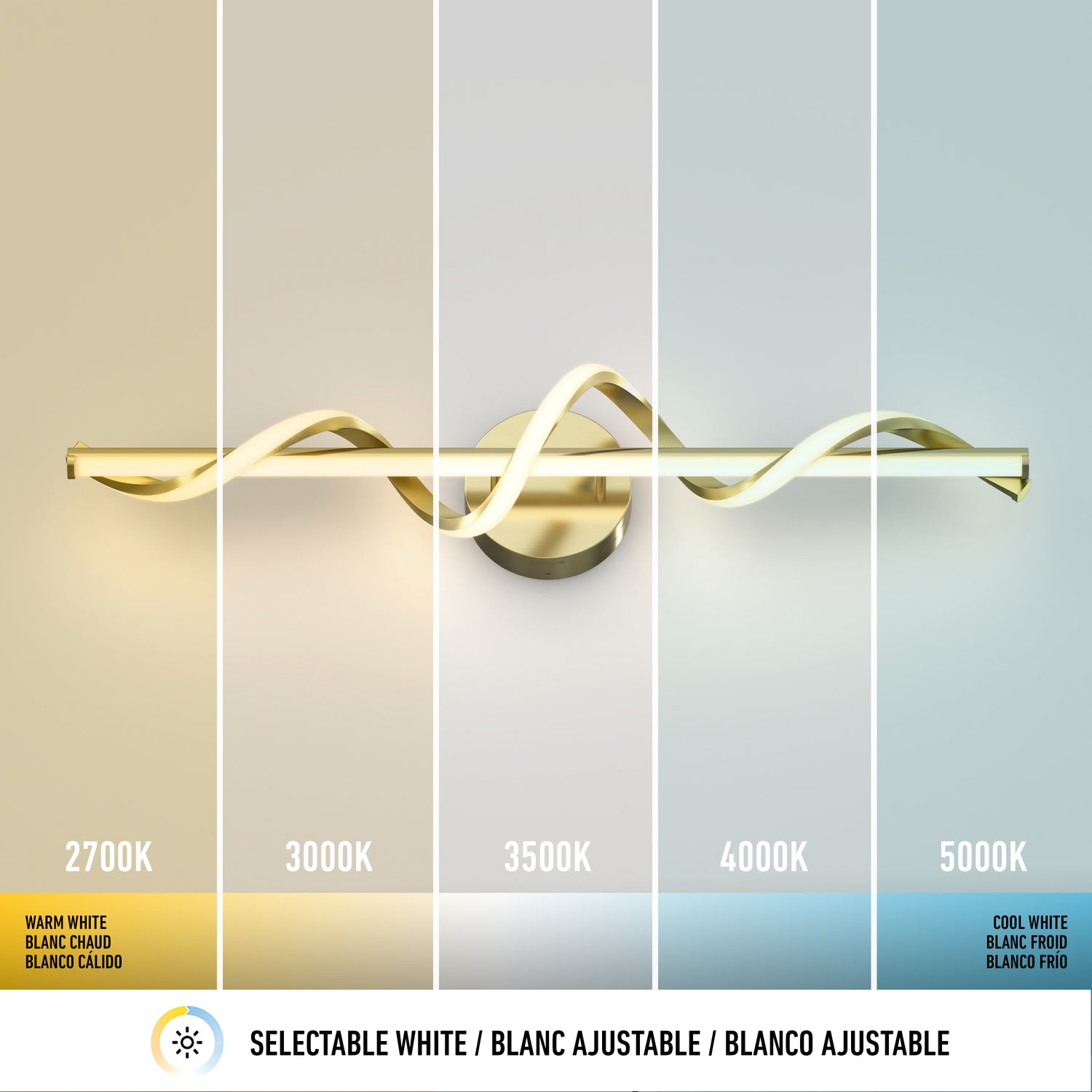 This sculptural wall sconce features a straight illuminated bar wrapped in a softly lit spiral, creating a bold yet elegant statement. Its contemporary design is a natural fit for minimalist bathrooms, casting a warm, ambient light above the mirror.