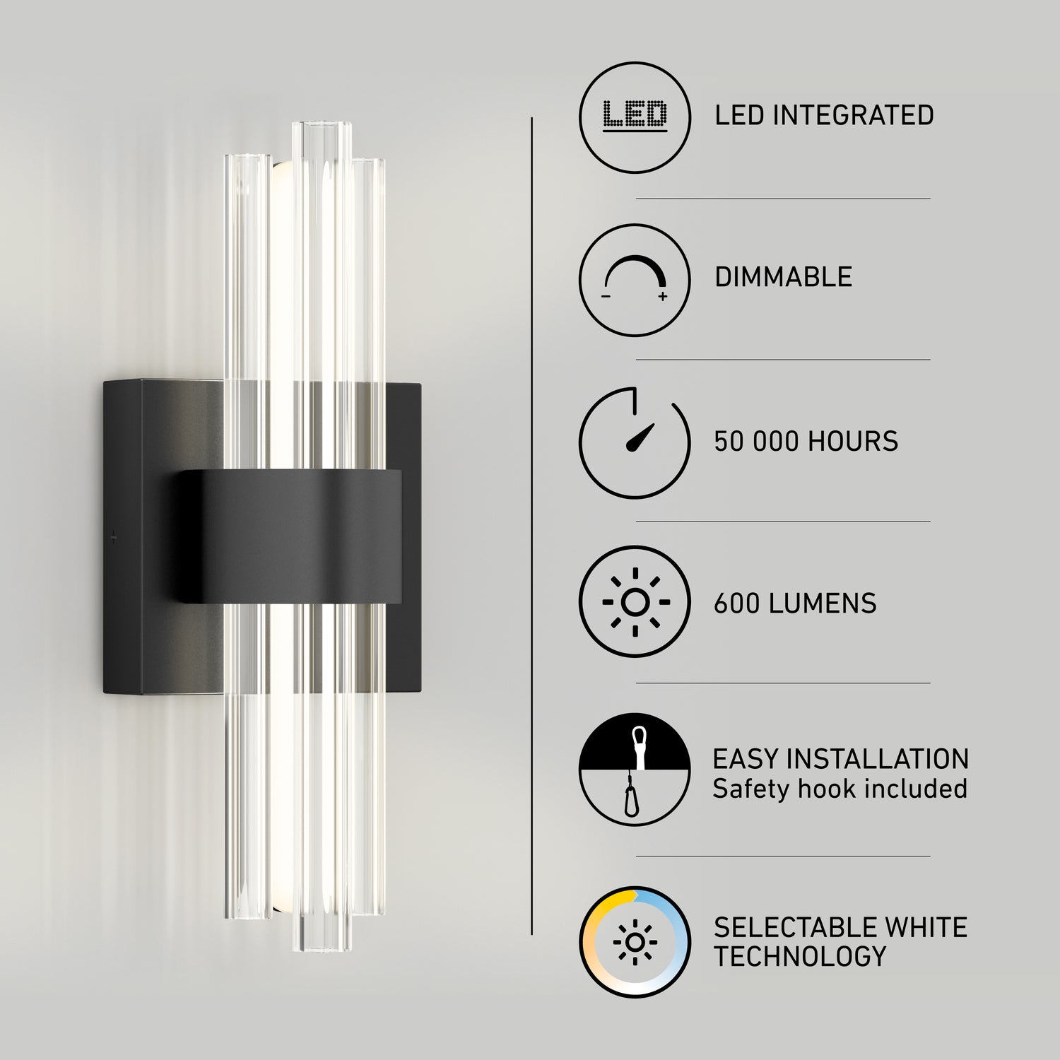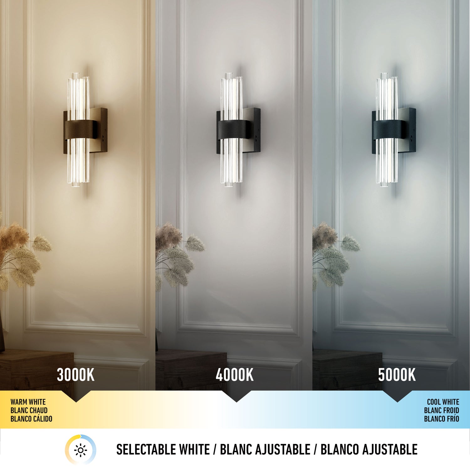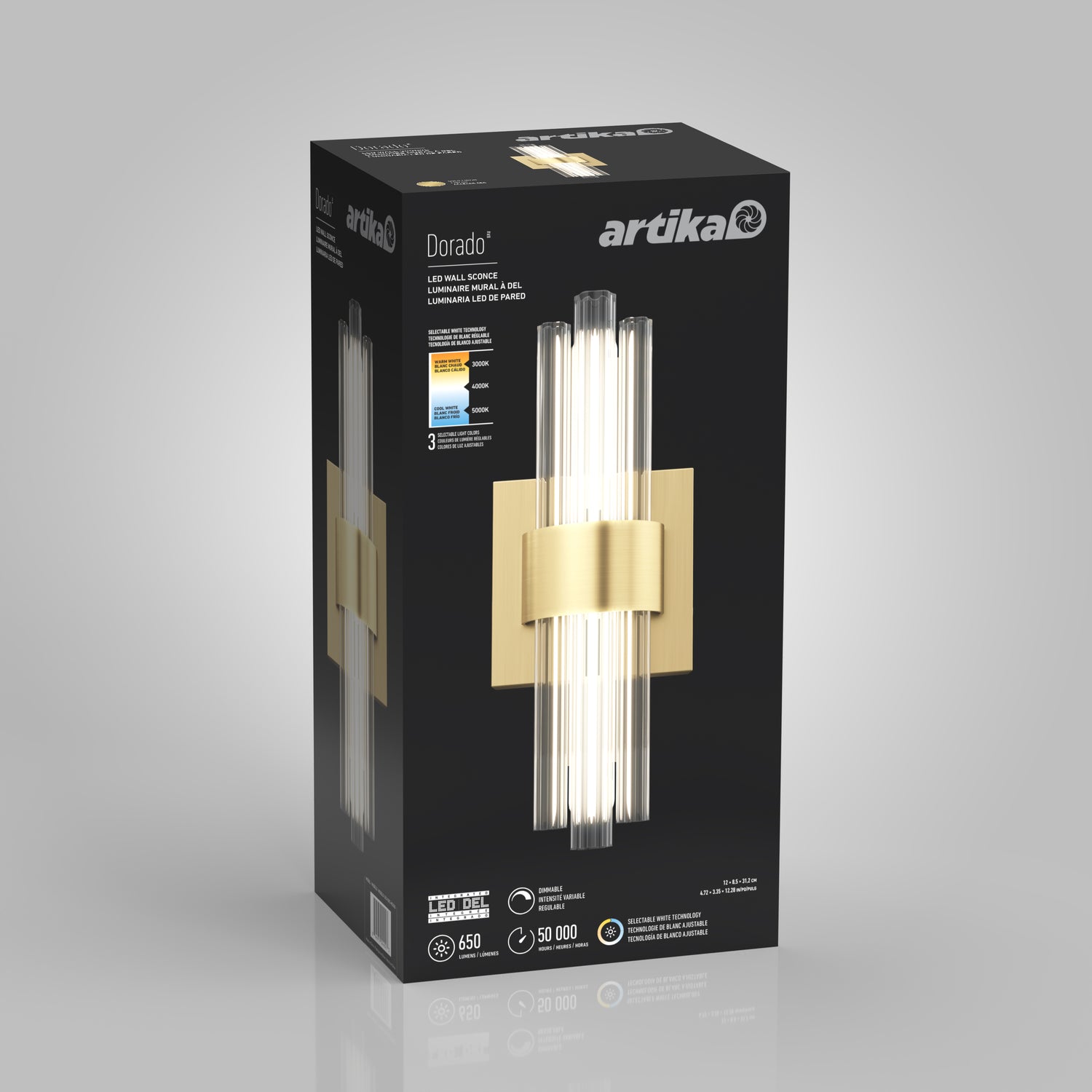 Delivering 650 lumens, it offers ambient lighting with adjustable brightness when paired with a compatible LED dimmer. Choose from three white tones—warm, neutral, or cool. Lifespan: 50,000 hours.