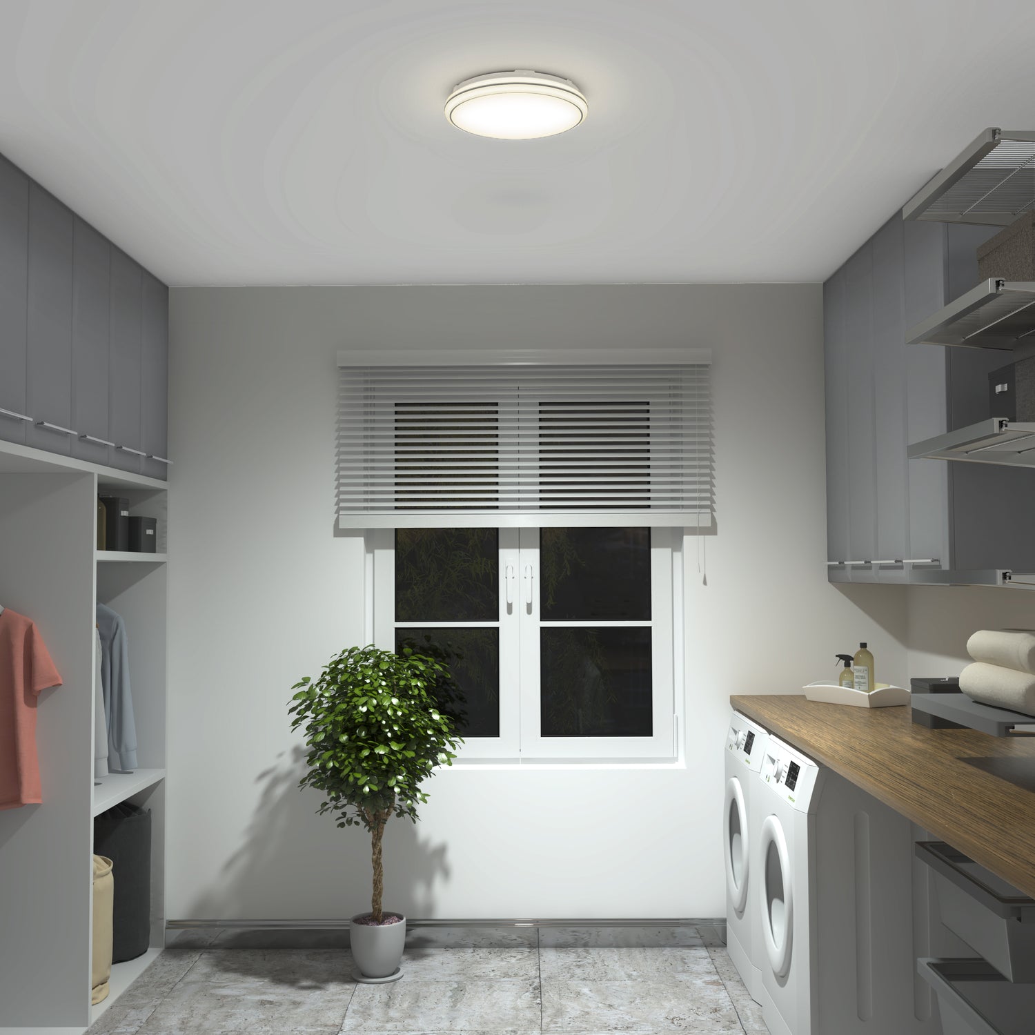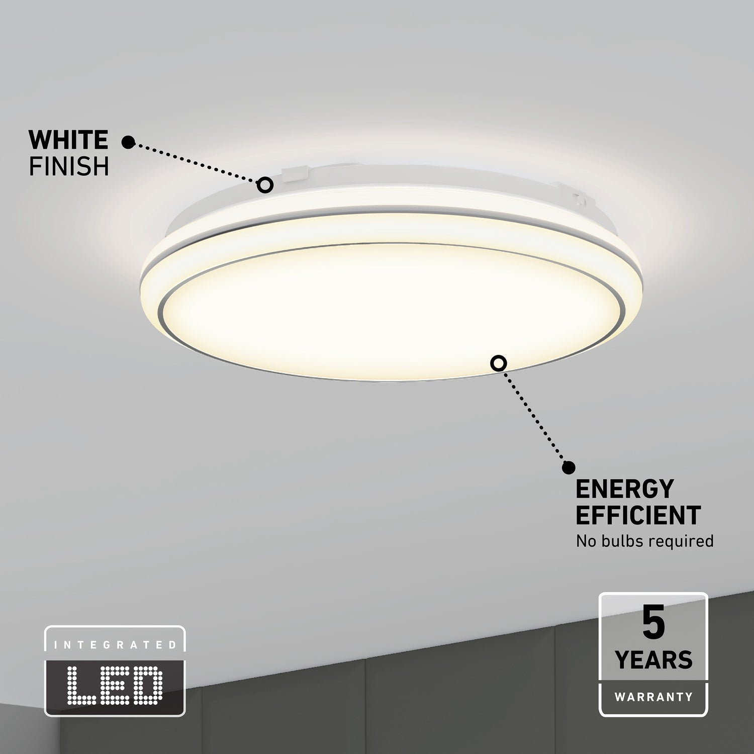 Perfect for bedrooms, offices, basements, and other areas that call for functional lighting, this LED ceiling light features a subtly domed design that adds dimension while staying understated.