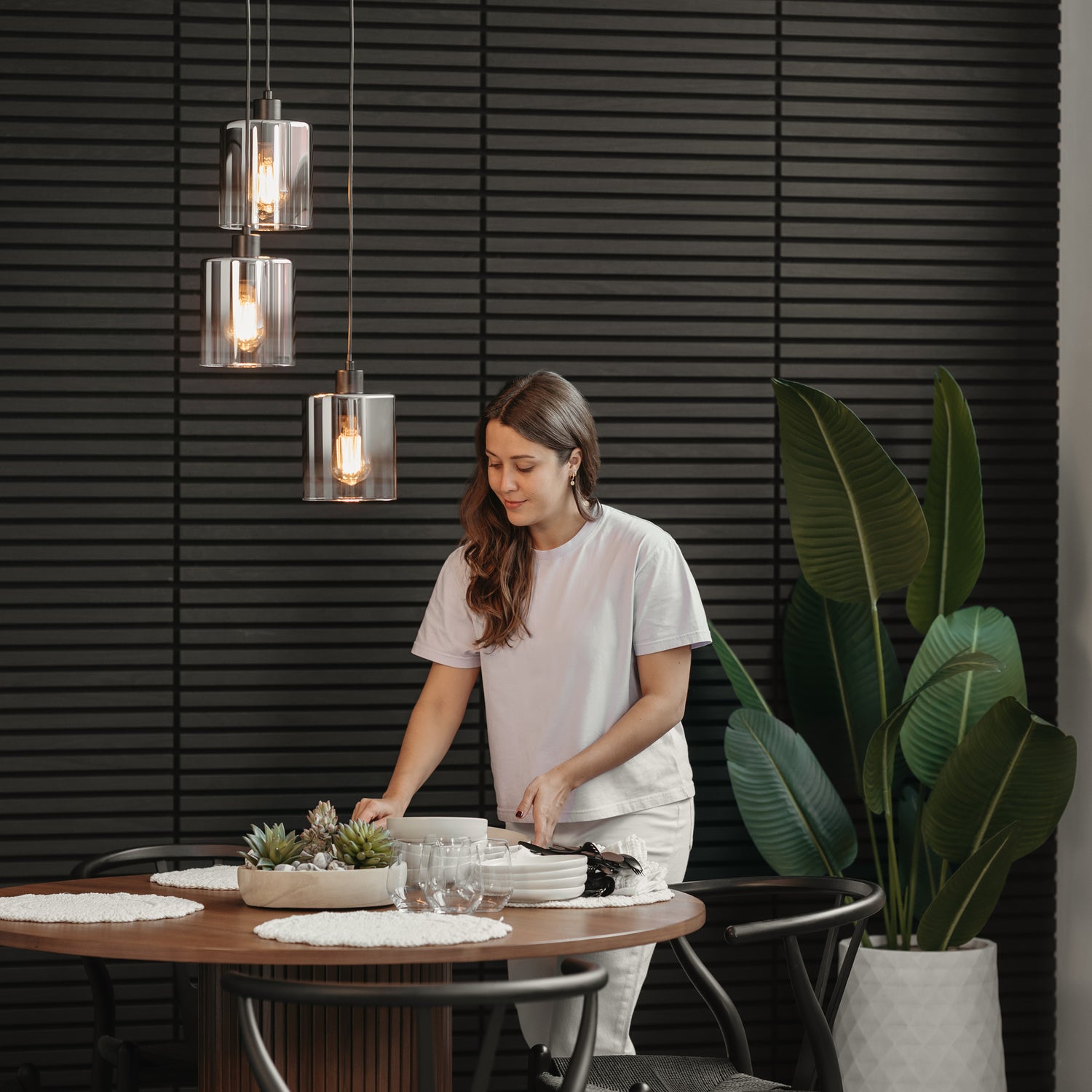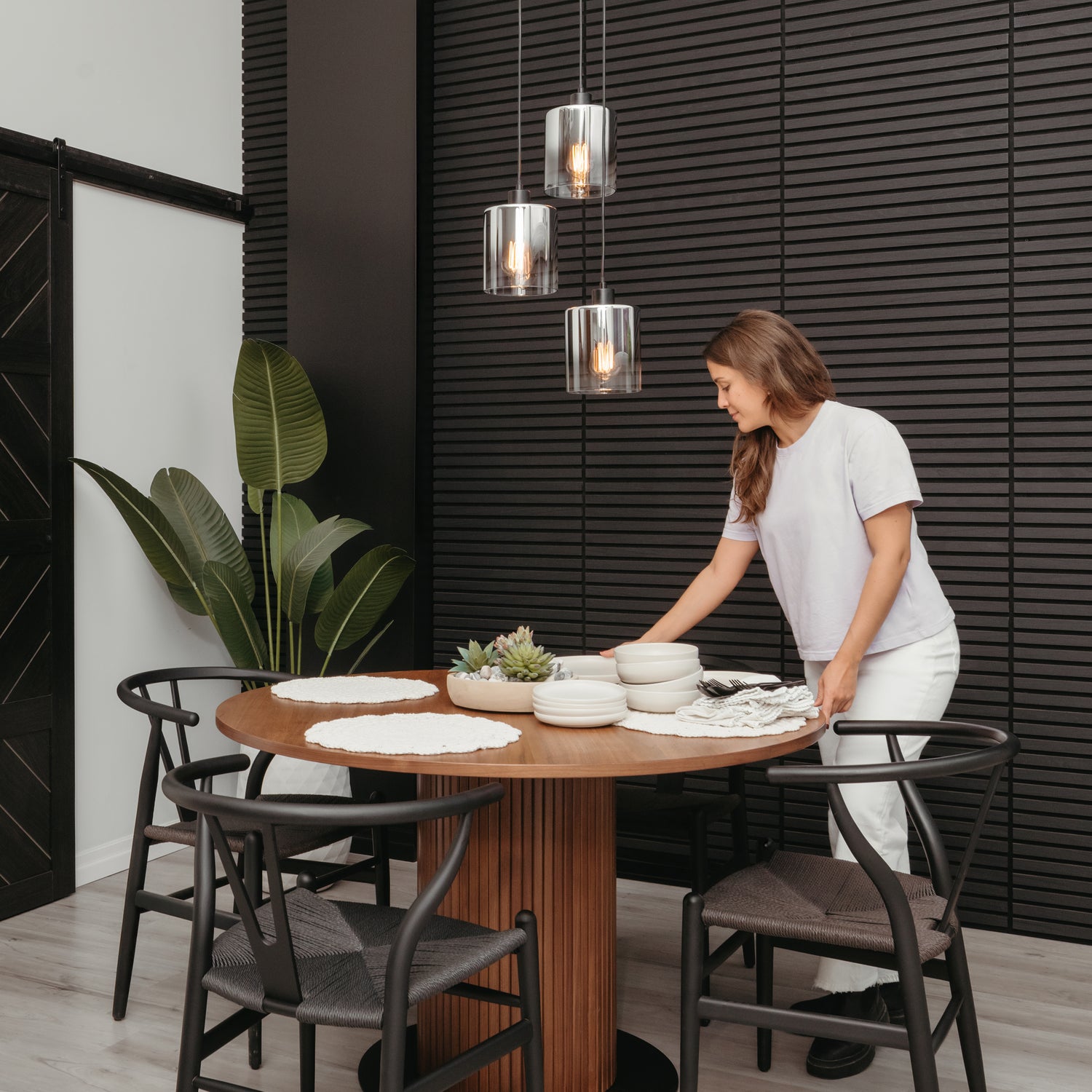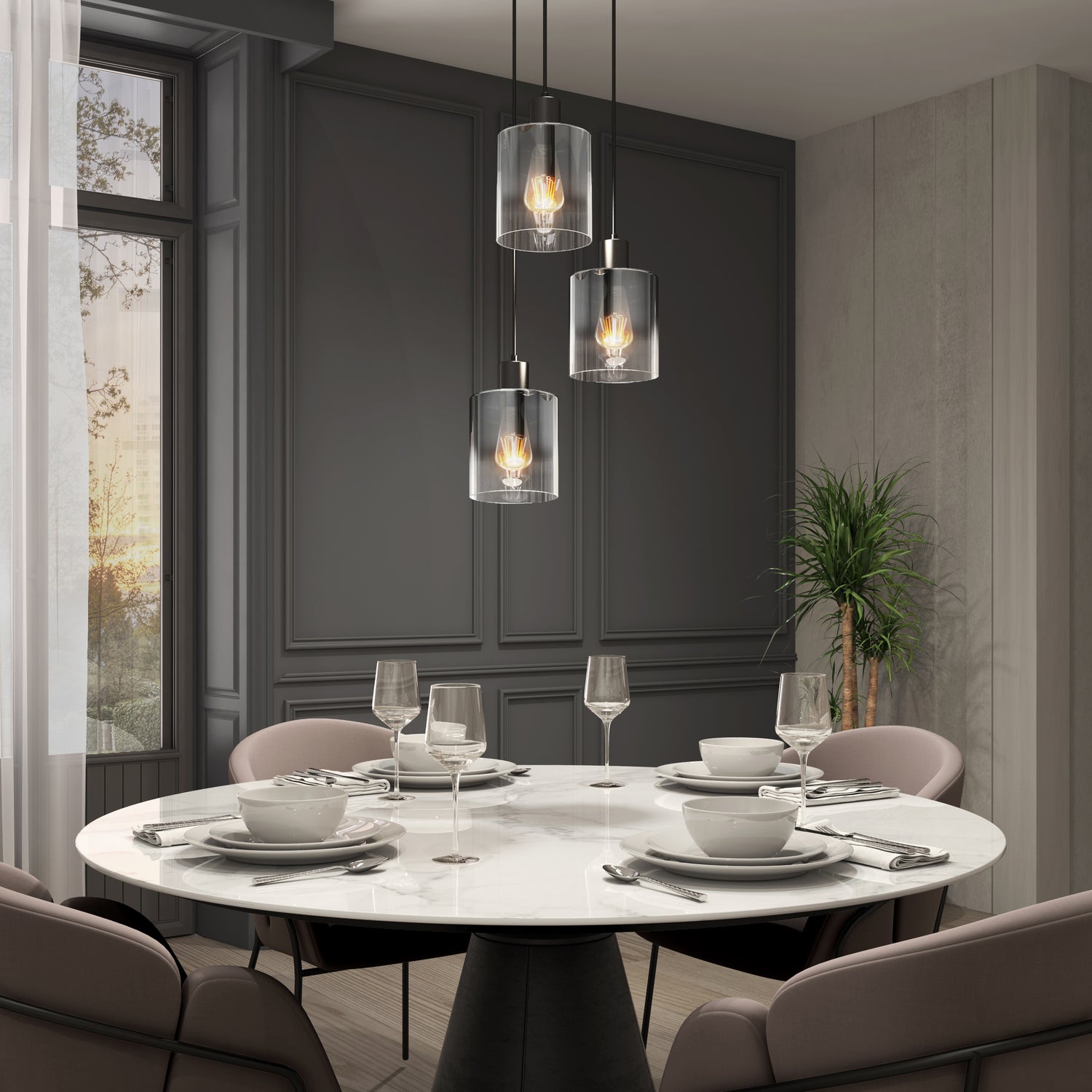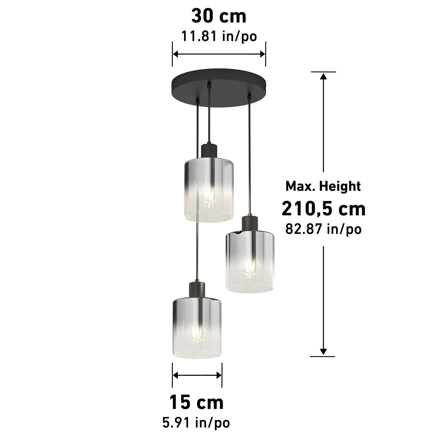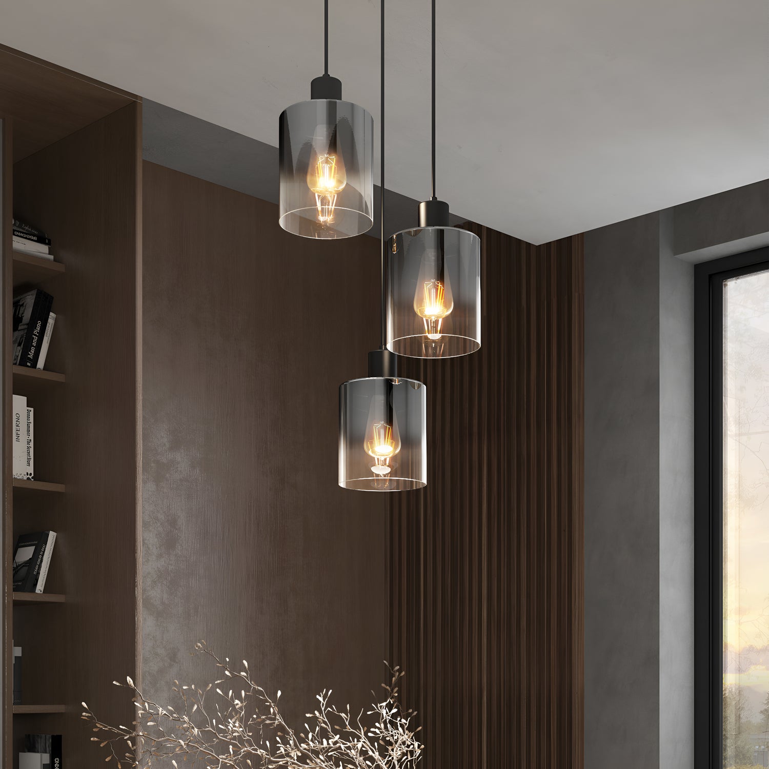 Elevate your space with the sophisticated and modern Haze 3-Light Pendant. Featuring three stunning black glass shades, this pendant light offers a perfect balance of style and functionality. The sleek black finish complements a wide range of decor styles, while the smoked glass provides a unique ambient glow. Ideal for dining rooms, kitchen islands, or living areas, the Haze 3-Light Pendant creates an inviting atmosphere with its striking design and soft lighting. With its adjustable height and easy installation, this fixture adapts to your space's needs and enhances the overall ambiance. Made with high-quality materials, the Haze pendant light ensures long-lasting beauty and performance. Please note that bulbs are not included. Brighten up your home with a bold statement piece that merges elegance and practicality.