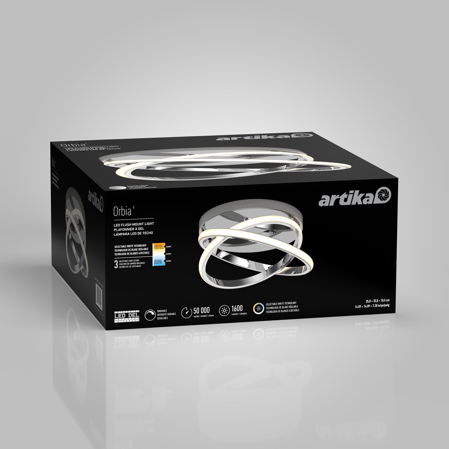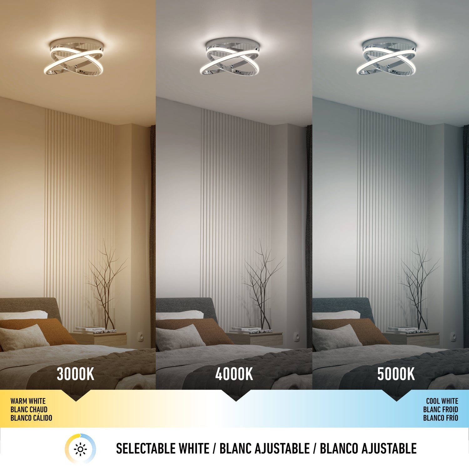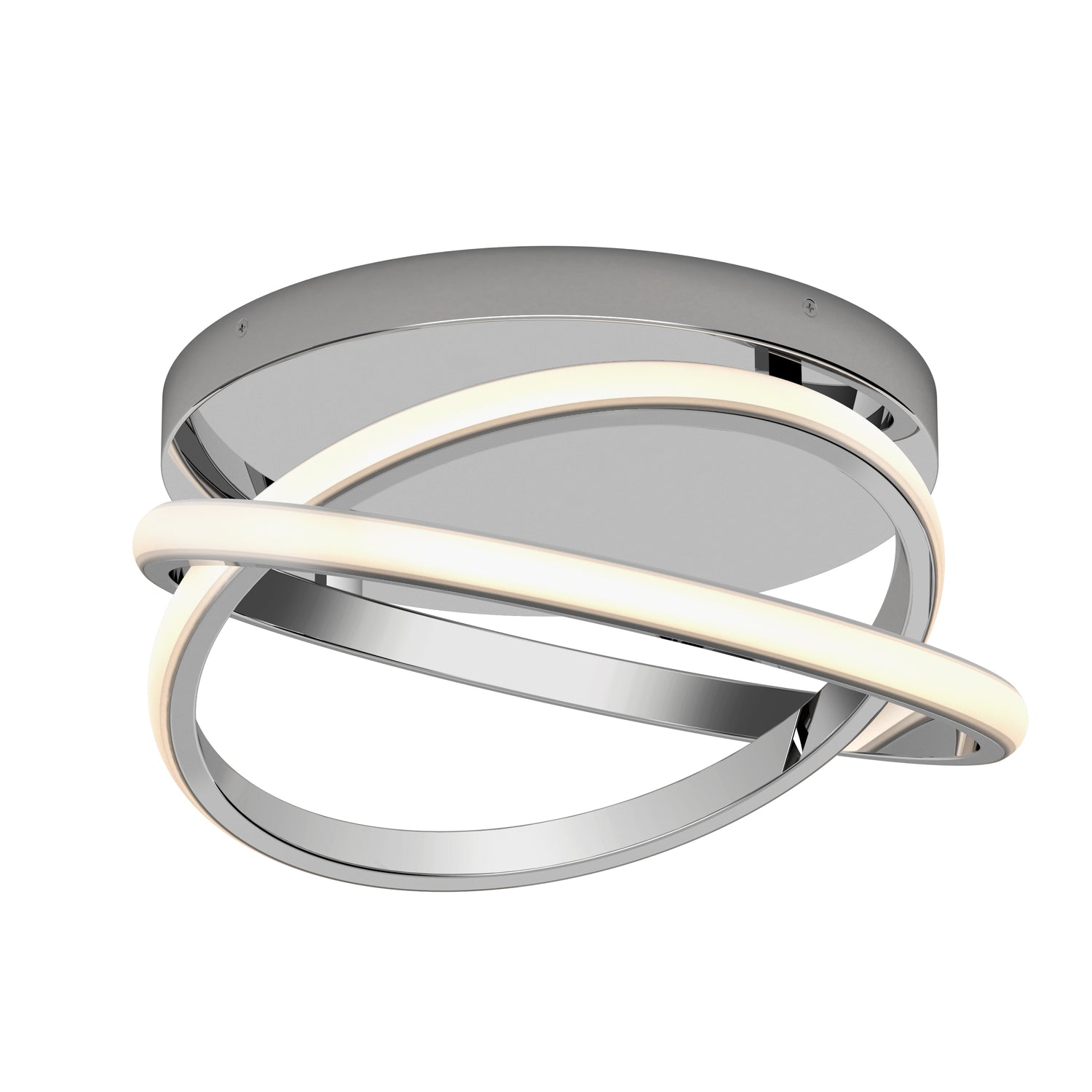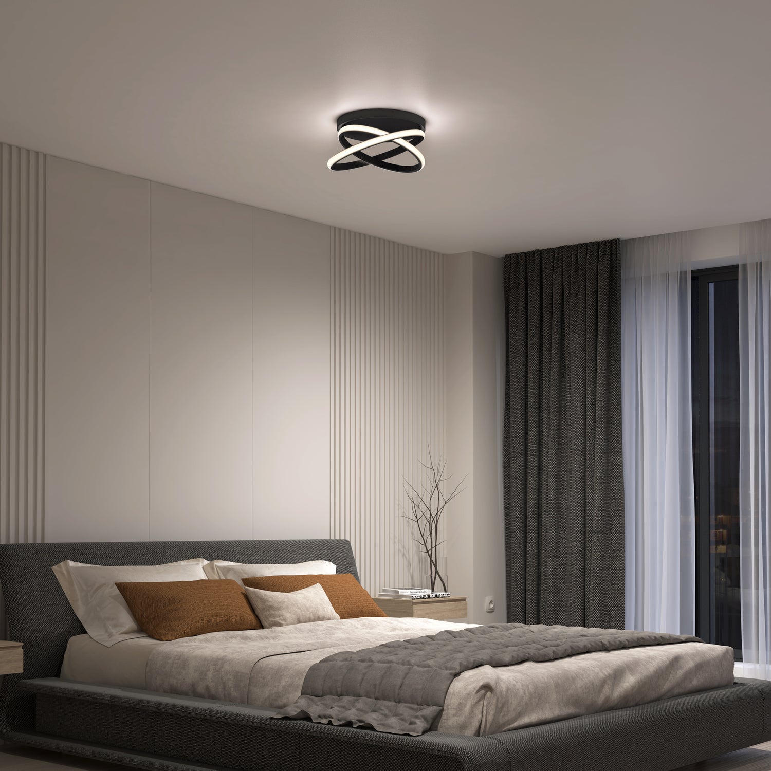 Designed with the themes of infinity and orbital motion in mind, this LED ceiling light showcases two intersecting backlit circles. Its matte black finish makes it a natural fit for contemporary bedrooms and offices. The luminaire emits 1,800 lumens and can be subdued with an LED-compatible dimmer. To integrate smoothly with other lighting, it offers adjustable colour-balance technology, inviting you to choose from three shades of white. Lifespan: 50,000 hours.
