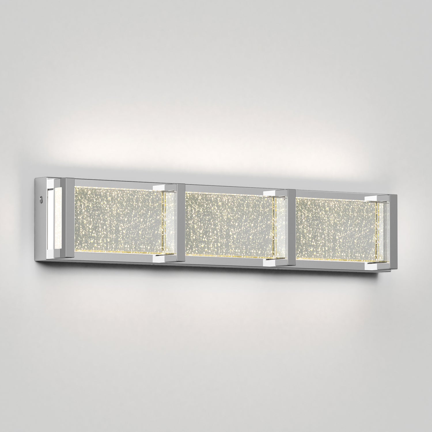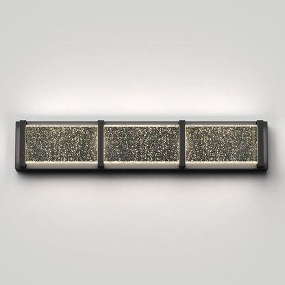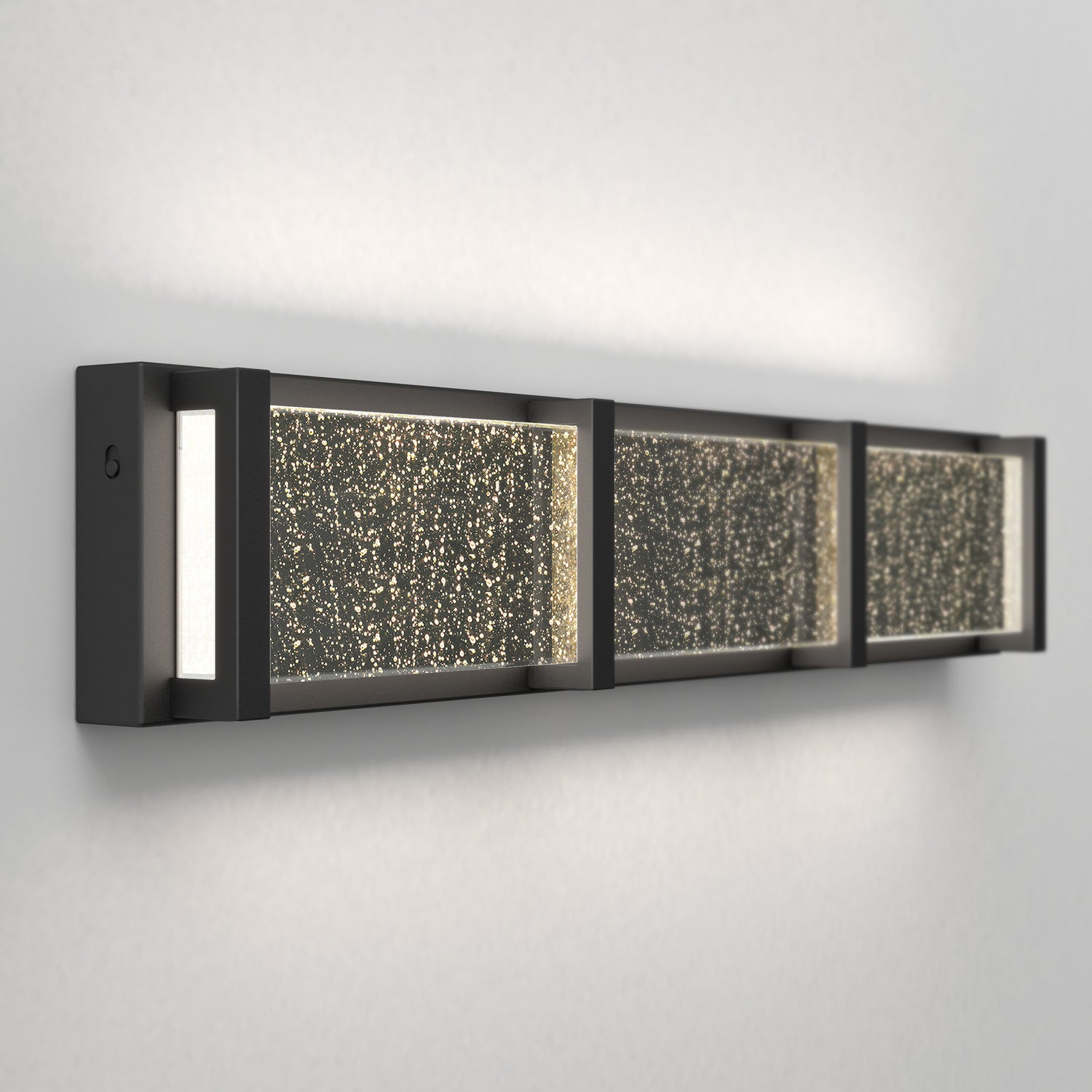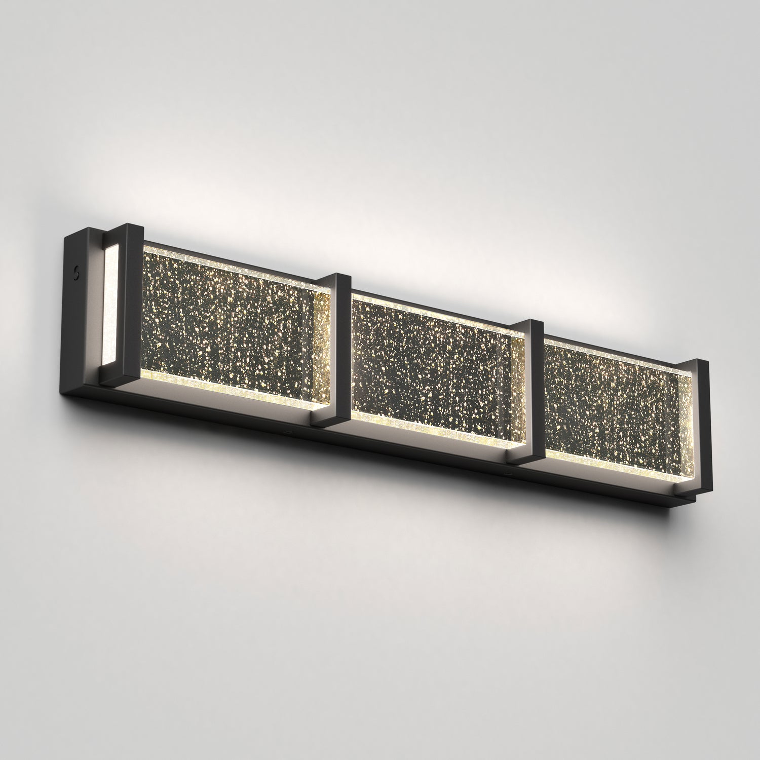 Highlight your contemporary decor with the elegant Subway Essence 3 vanity light in black. Its urban style pairs with a constellation of tiny bubbles to conjure up the dark and mysterious world of the underground. Three adjustable colours allow you to vary the light from warm white to cool white thanks to tunable white technology. Featuring a premium glass diffuser, this fixture with integrated LED lights can be easily installed on the wall of an ultra-modern bathroom. Subway Essence 3 promises 50,000 hours of lighting and an output of 900 lumens. To adjust the brightness, simply install a compatible LED dimmer.