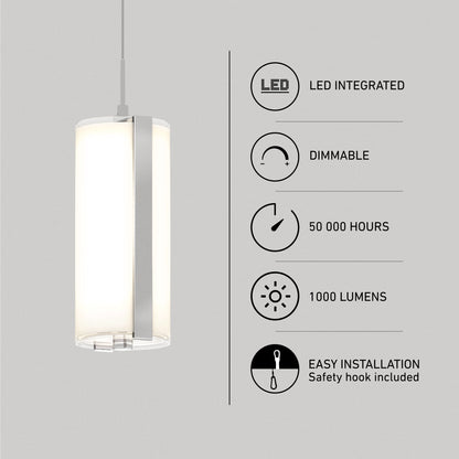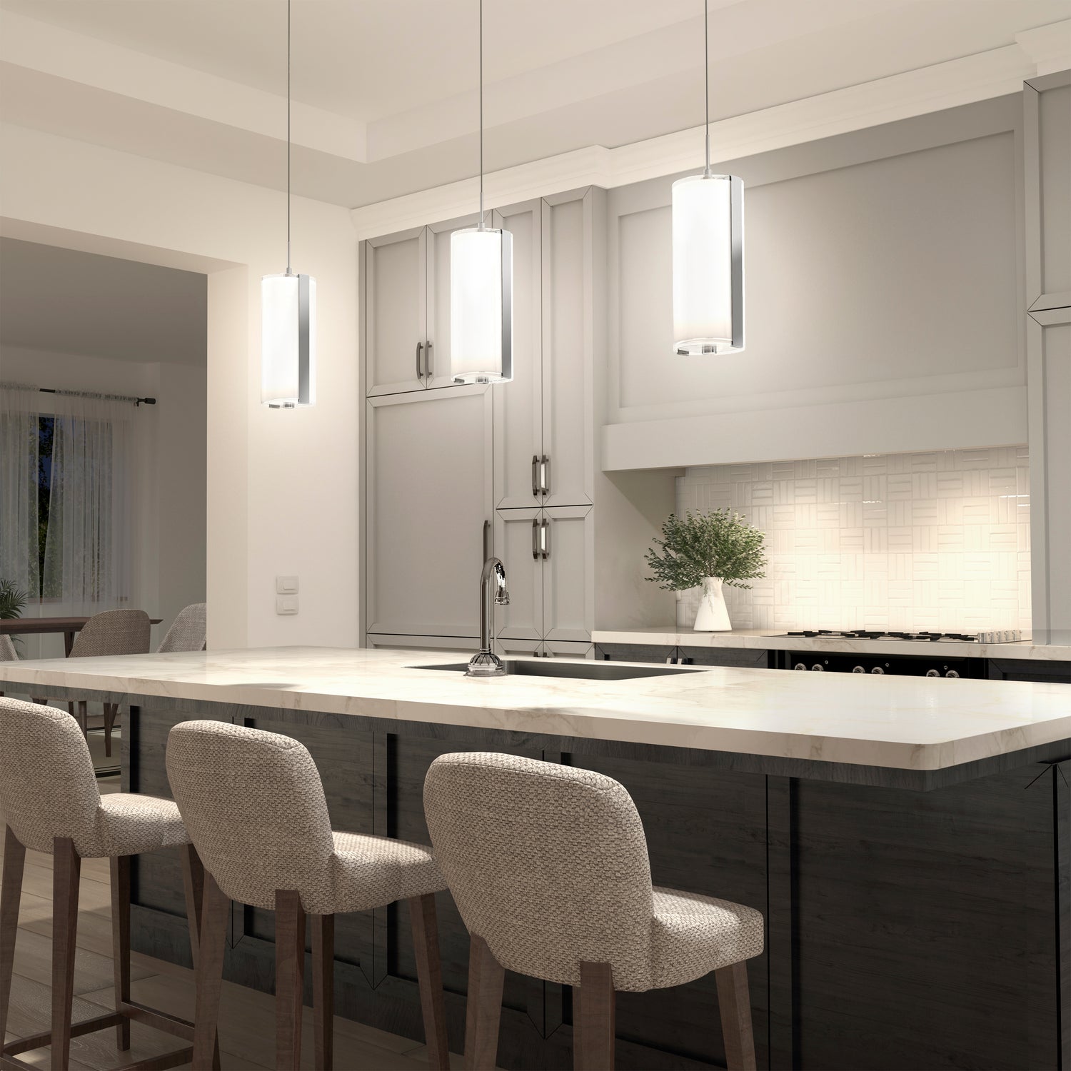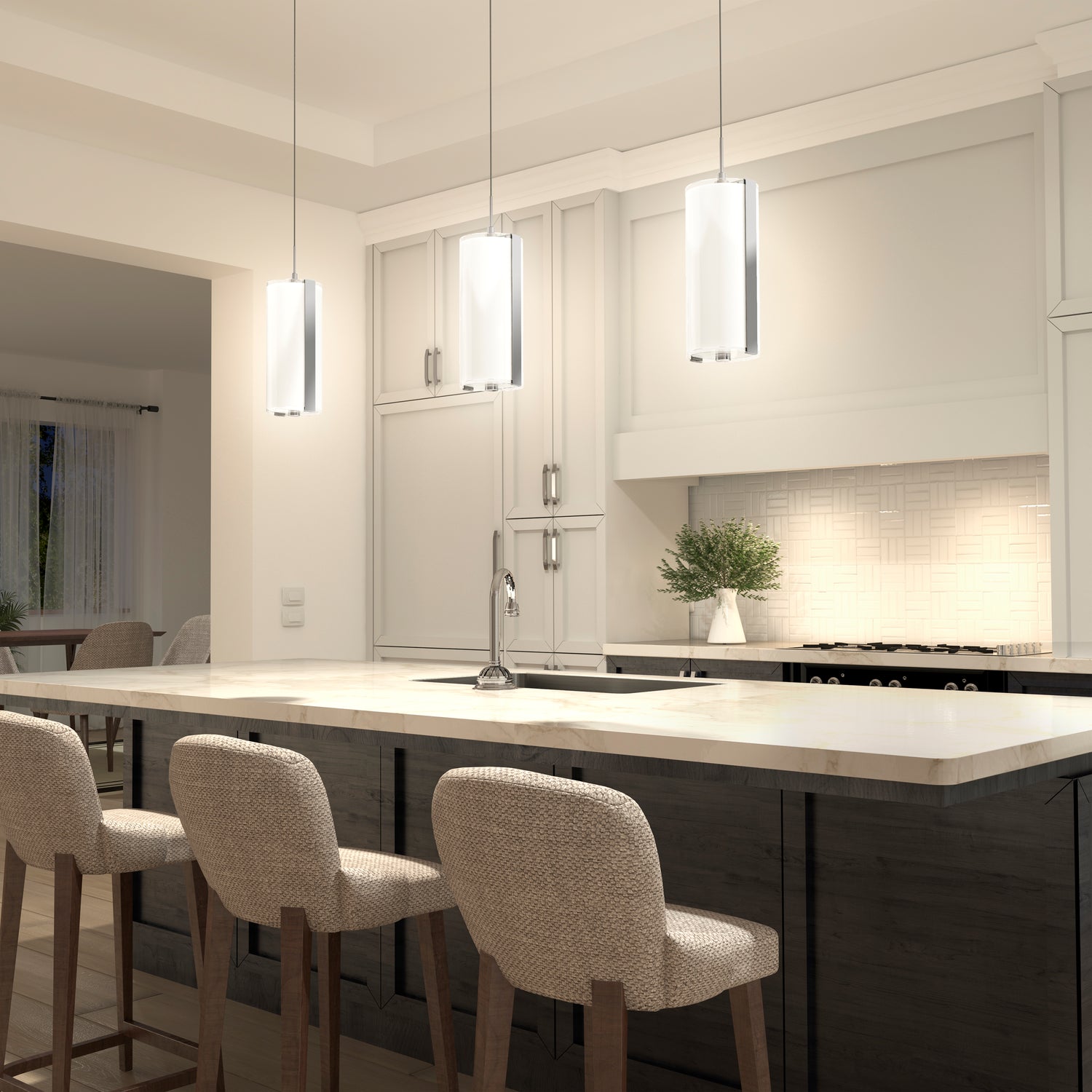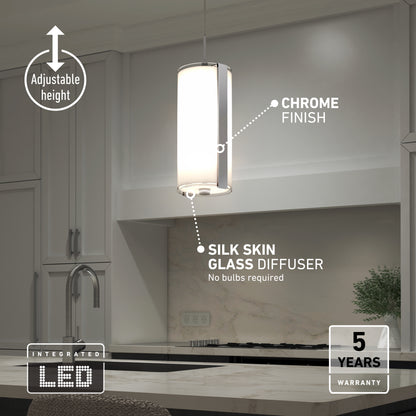A subdued design doesn't have to mean a boring one. Just ask anyone who's installed Subway Round in their home. This LED pendant light adds the perfect touch of modernity in the kitchen or front entrance. Moreover, its chrome accents highlight its exceptional durability (more than 50,000 hours)! A versatile fixture, Subway Round lets you adjust its height and brightness effortlessly. It's easy to install, matches any moment, and saves on energy thanks to its compatibility with most LED dimmers.