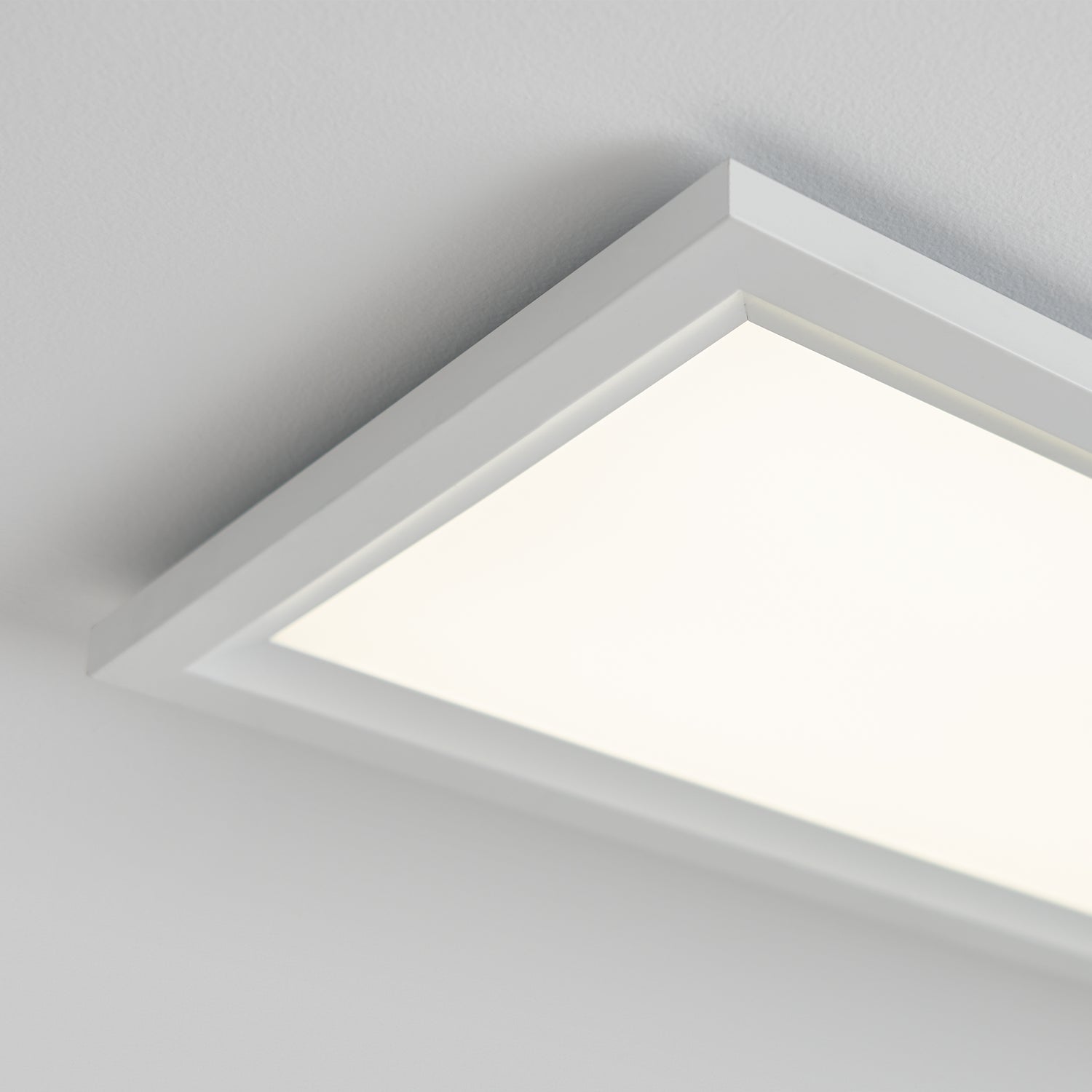 The Artika Sunray ultra thin LED light panel 3 CCT features a slim, modern white frame that mounts flush on a plain white ceiling, providing bright and even illumination.