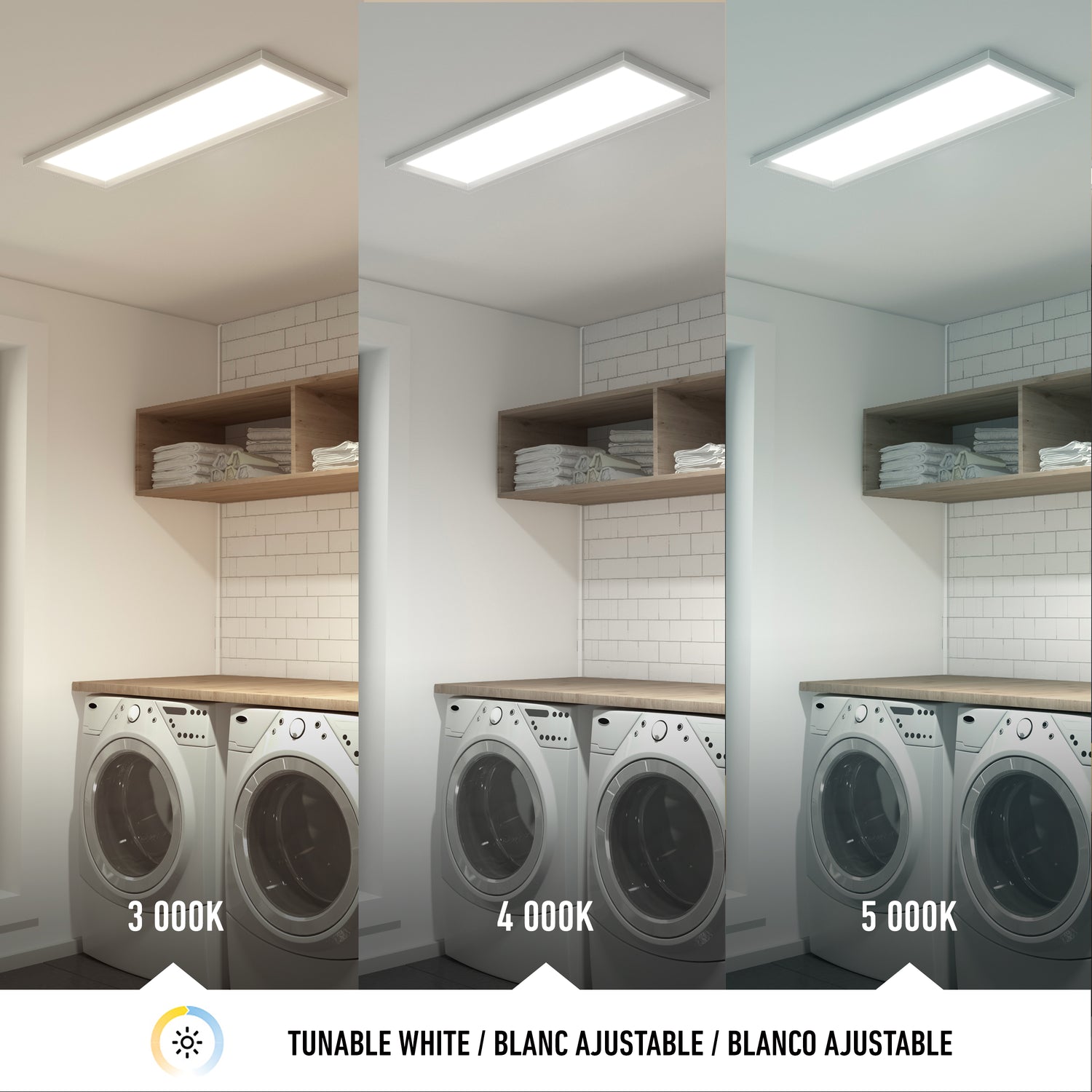 Sunray is an ultra-thin LED panel that is perfected suited for all kitchens, basements and garages requiring efficient and functional lighting. This discreet and modern-looking ceiling light ensures even light distribution in all settings. Tunable white technology provides 3 adjustable light colors that vary from warm white to cool white. Connected to a compatible LED dimmer, this practical fixture is fully dimmable from 20 to 100%. Sunray is designed for quick and easy installation on drywall with regular electrical junction boxes. It provides a brightness of 4350 lumens for 50,000 hours.