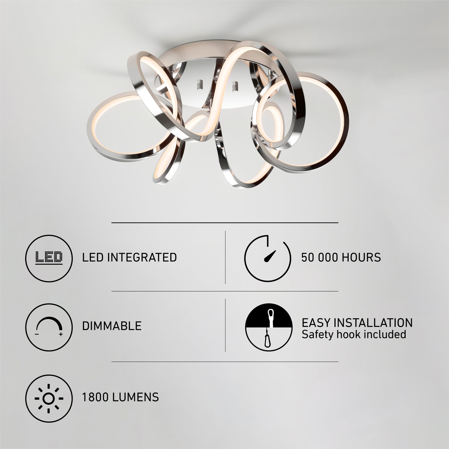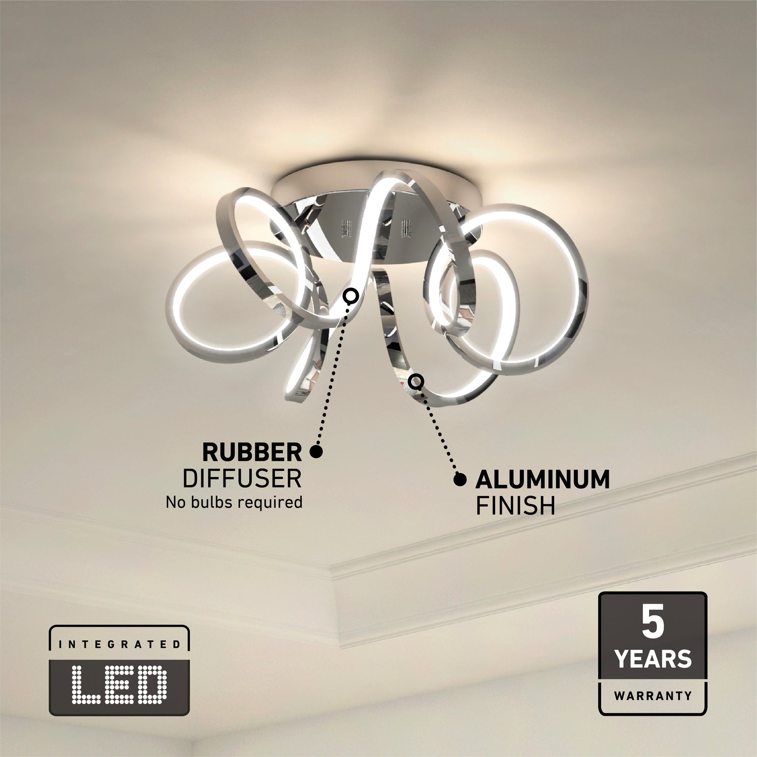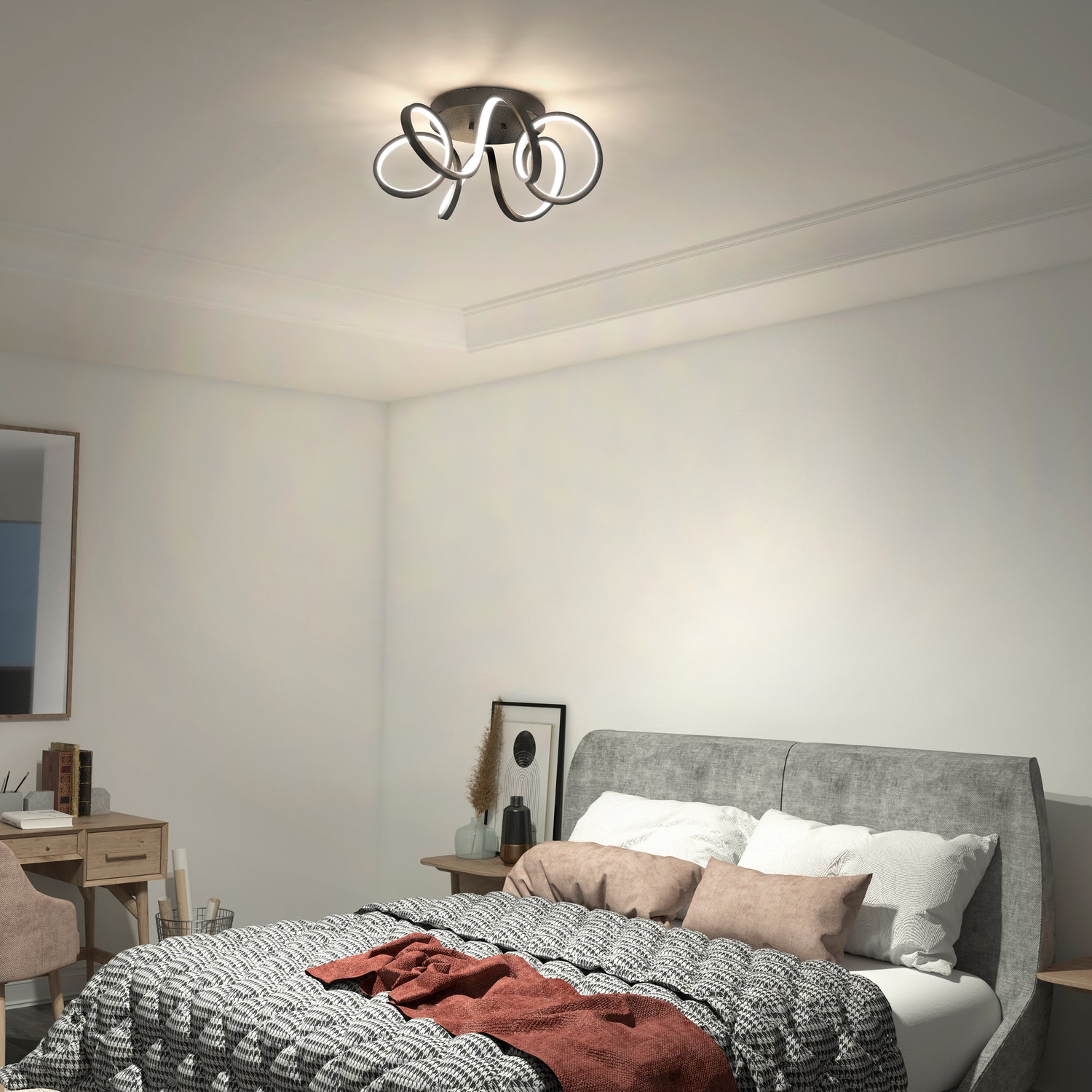 The Swirl Ribbon Integrated LED Light Ceiling Light is a bold piece for daring decors. With its unique design, Swirl Ribbon blends minimalistic lines with artistic flair. The result is a standout piece that's as decorative as it is functional.Swirl Ribbon's modern design and matte black finish complement the ceiling light's signature glow. It's compatible with most dimmers, easy to install, and offers a minimum lifespan of 50,000 hours so you can appreciate its brilliance for years.
