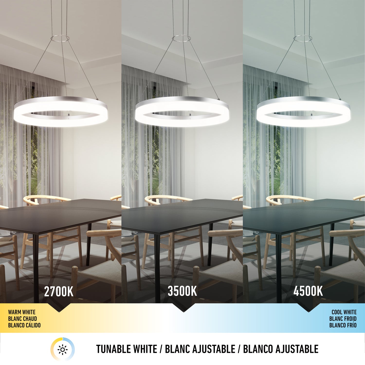 With Optical, our craftspeople bring the luminaires of yesteryear into the present day. While its shape evokes the crystal chandeliers of an earlier time, its design is unmistakably modern and minimalist. This standout LED pendant light offers the perfect ambiance for every moment throughout your day.In addition to elevating your home d\u00E9cor, Optical boasts a bulbless design that's compatible with most LED dimmers. It has a minimum lifespan of 50,000 hours so you can appreciate its glow for years.
