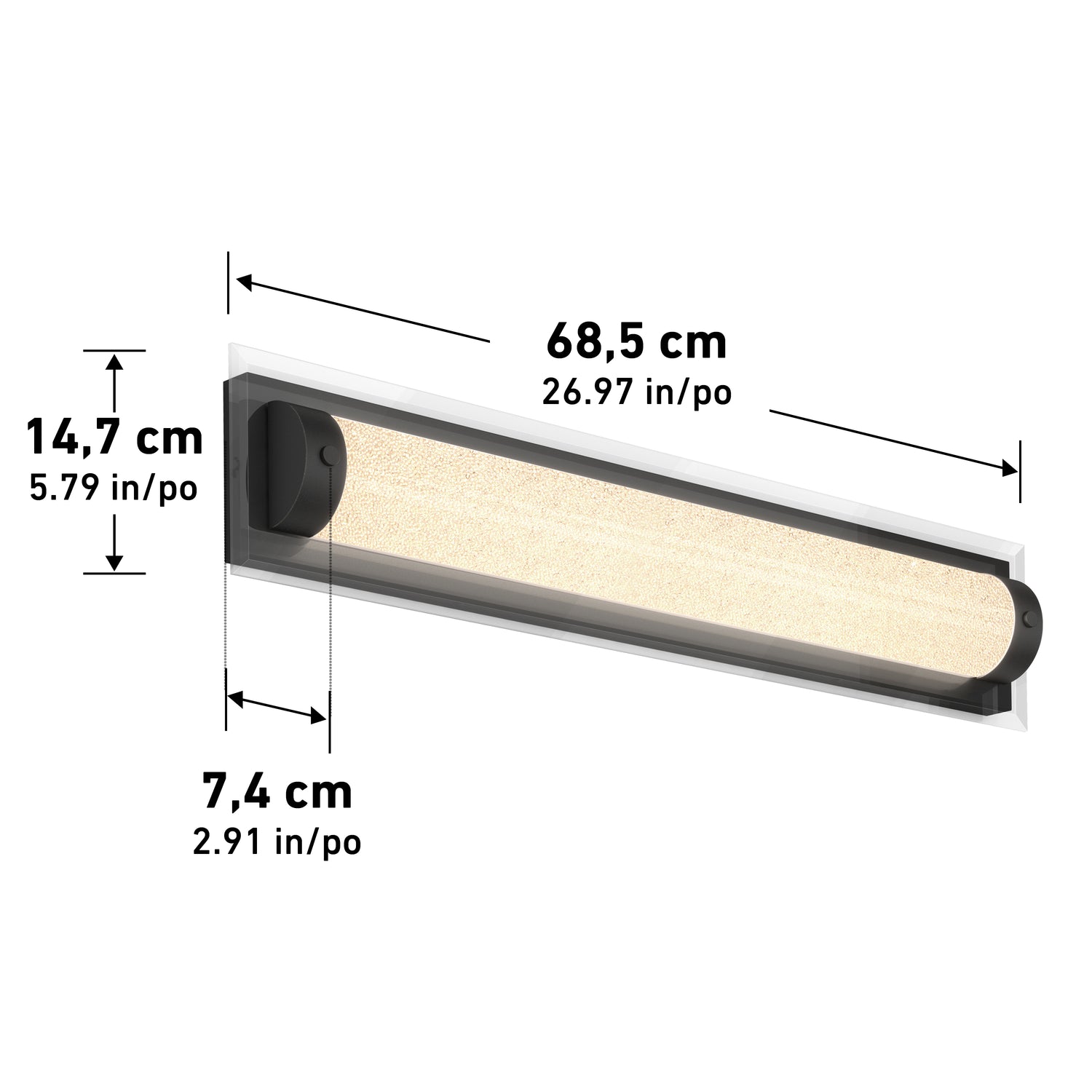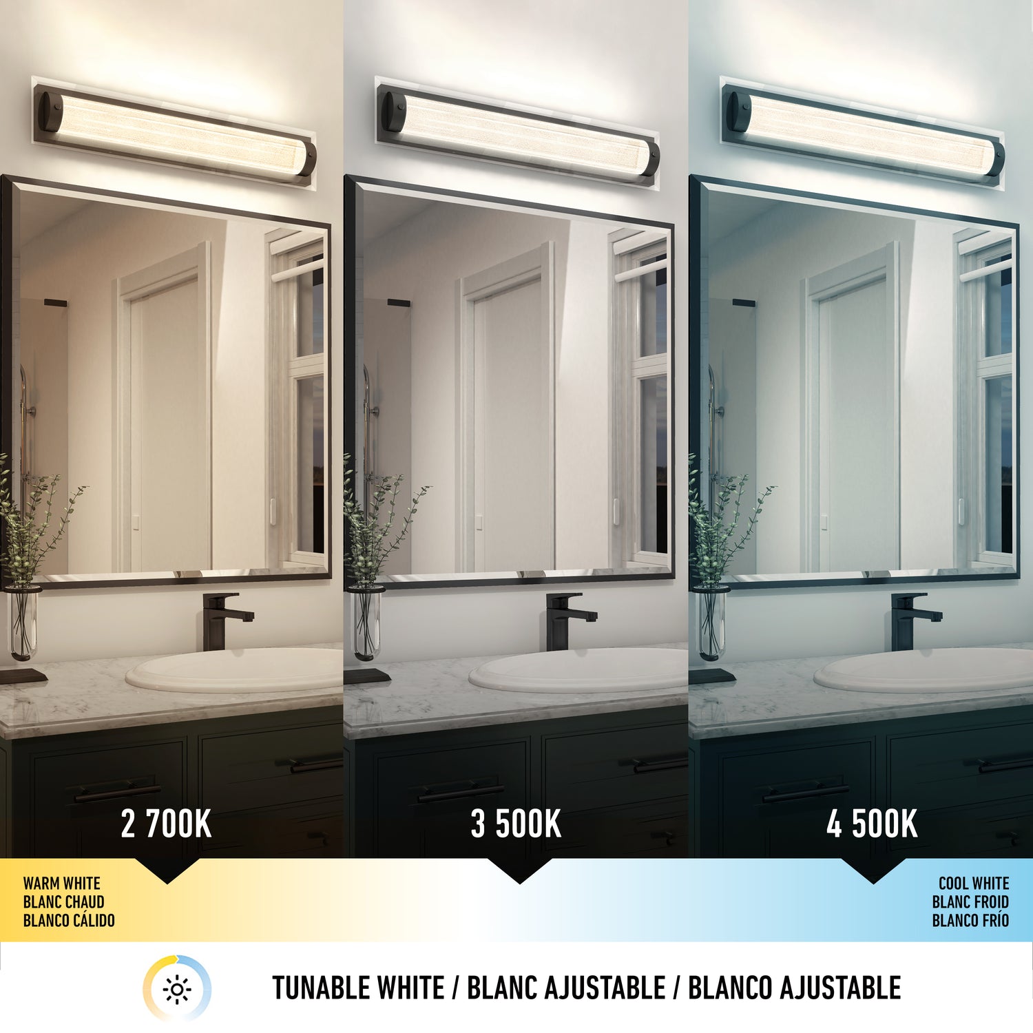 * This item is FINAL SALE * Your bathroom will shine brightly with the Glamour vanity light! Its eye-catching clear diffuser with glass crystals takes your d\u00E9cor up a notch. Requiring no light bulb, this LED fixture in matte black blends perfectly with all contemporary settings. Tunable white technology allows you to choose between 3 adjustable light colors, from warm white to cool white. By connecting it with a compatible LED dimmer, you gain total control of its brightness. All hardware is included for an easy installation. This elegant fixture with integrated LED lights emits a brightness of 1600 lumens for a total of 50,000 hours.